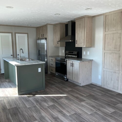 GOBBLE UP SAVINGS this November! When you purchase a home for $50,000 or more, enjoy 4 MONTHS FREE SITE RENT & NO APPLICATION FEES*! EXPIRES 11/30/25! ACT FAST! *Restrictions Apply. This brand-new 2-bedroom, 2-bath home coming soon offers modern style and everyday comfort in one perfectly designed package. Step inside to discover beautiful vinyl flooring throughout, a bright open-concept kitchen with a large center island, and brand-new appliances ready for your first meal. The primary suite features a walk-in closet and a private ensuite bath-your own peaceful retreat at the end of the day. The second bedroom is ideal for a guest room, home office, or hobby space-flexibility to fit your lifestyle. A dedicated utility area adds extra convenience for laundry and storage. Compact yet cleverly designed, this home packs a punch with quality finishes and thoughtful details in every corner. Homes like this don't last long-schedule your showing today before it's gone!