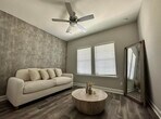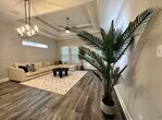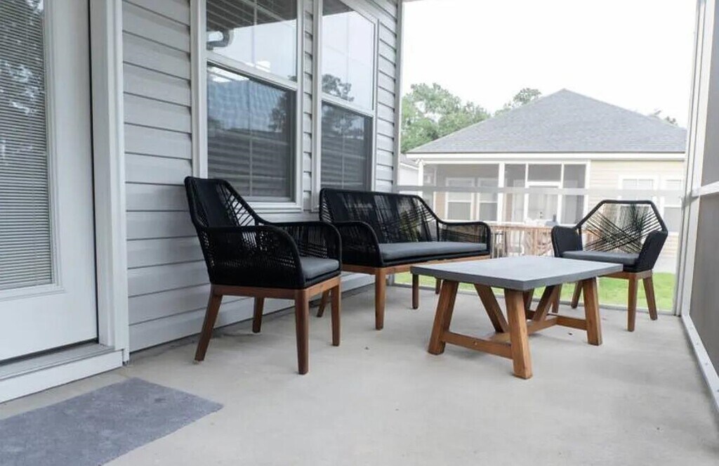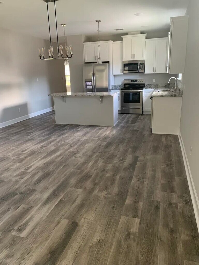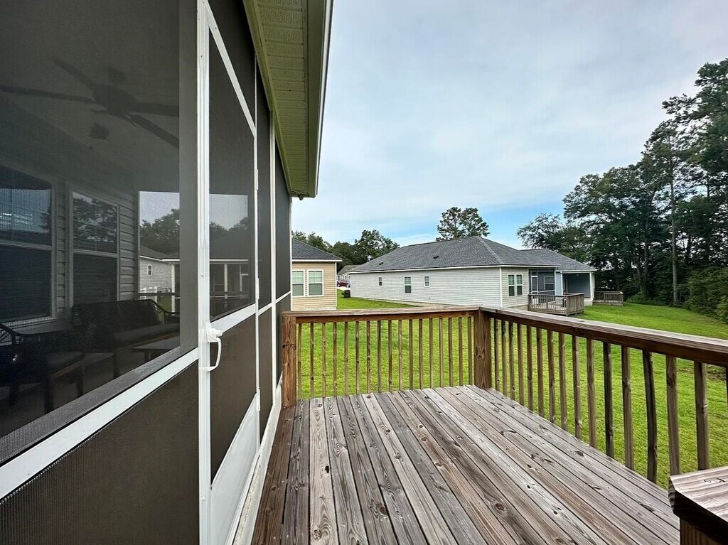 Imagine living in this luxurious,modern home that was built in 2021. It's a one-level home with a prime corner location,so you'll have plenty of natural light throughout the house. The back of the house has a flexible space that can be used as a back screened-in porch. It opens onto a deck with a charming outdoor patio feel,perfect for cozy evenings under twinkling patio lights. Whether you're roasting marshmallows or relaxing with friends,this outdoor space is sure to impress. The open floor plan features a beautiful chef's kitchen with sleek finishes that flow seamlessly into the dining room and family room. This is ideal for both everyday living and entertaining. The spacious primary master bedroom suite awaits,with his-and-hers sinks,a separate shower,a walk-in closet,and a luxurious en-suite bathroom for your comfort. There's also a second full bathroom shower/tub combination between the second and third bedrooms. This house has an in-unit laundry area and a 1-car garage,so it's perfectly catered to your modern lifestyle and ready for you to move in! Make this modern and functional house your peaceful,comfortable retreat! Schedule your private showing today! Renter is responsible for electric,water. Last month's rent due at signing. No smoking allowed. Not pets are allowed.