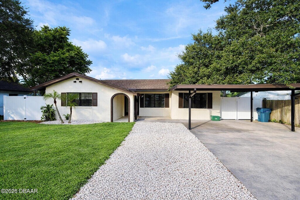 RENT-TO-OWN AVAILABLE! Spanish-Style Pool Home with Versatile detached unit. The home is Fully Renovated & Move-In Ready. Step inside this sun-splashed 3 bed,2 bath,1,774-sq-ft beauty and feel the blend of Mediterranean charm and modern ease. Behind the new vinyl privacy fence,an inviting pool sets the tone for effortless indoor-outdoor living. The detached in-law suite/ADU flexes as a pool house,guest retreat,office,or yoga studio. Thoughtful updates include NEW LVP flooring,NEW AC system,newer roof,newer water heater,and an upgraded kitchen with stainless appliances,plus refreshed bathrooms. Every space feels crisp,comfortable,and turnkey. All this in a high-growth corridor; just 5 minutes to Tanger Outlets,Buc-ee's,and major roadways,and 10 minutes to Publix,Home Depot,and the Daytona International Speedway. Contact the listing agent for RENT-TO-OWN TERMS.