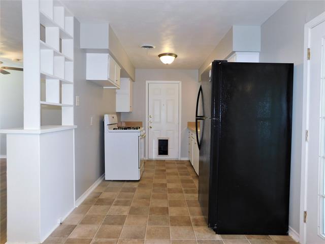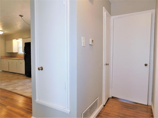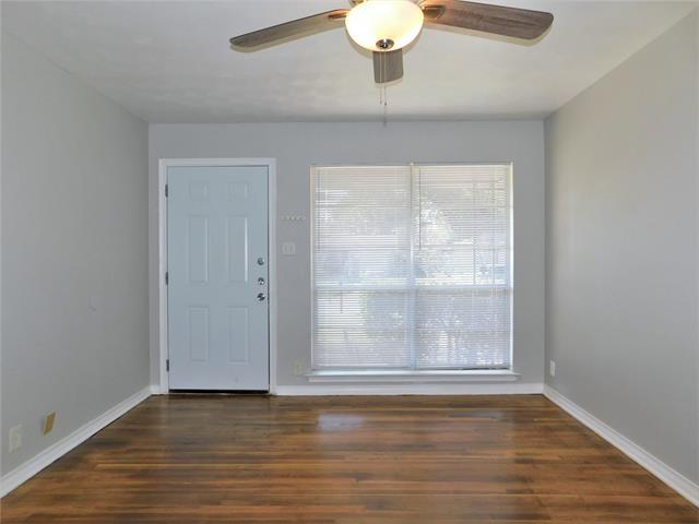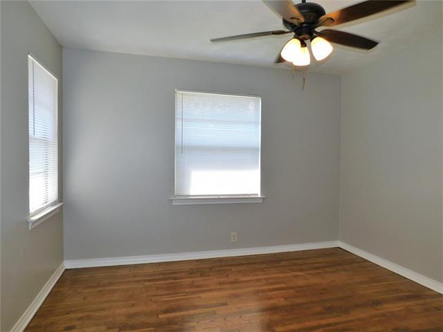 Three bedroom, one and a half bathroom home in north Denton. Fresh interior paint. Original Wood flooring throughout. Master includes a half bathroom. Property features ceiling fans and a built in book shelve. Large shaded corner lot. Refrigerator and stackable washer & dryer included.
