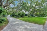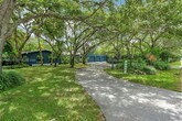 Sprawling 5 bedroom, 4 bath home is nestled on an acre of gracious oaks and lush greenery. Meandering pathways lead to quiet spots for relaxation and nature watching. Unique home has oversized windows showcasing serene views. Wood vaulted ceiling accents main living. Expansive primary suite features spacious sitting area with skylights and plantation shutters overlooking lush gardens. Gather with friends in the large entertainment room with mahogany pub-style bar. Home boasts office space, fireplace, and generously sized rooms. Kitchen features Corian counters, sleek Italian cabinetry, and built in Sub Zero. MLS # A11968530
