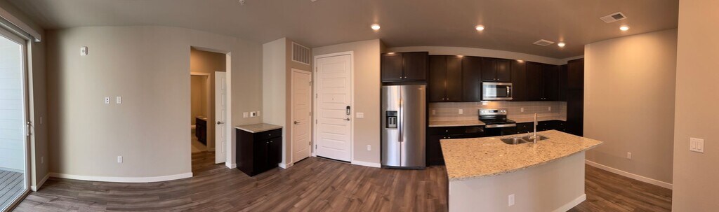BRAND-NEW one-story luxury condo home right on the Cherry Creek Trail in pristine condition, and we are looking for that special tenant who values quality and is willing to maintain it. Nice interior corridor accessed via the elevator. Exquisite “Ouray Dark” design package with warm espresso-colored cabinetry throughout. Contemporary floor plan with living room overlooking deck. Lux granite countertops in kitchen with a cozy breakfast bar. Primary suite features walk-in closet, large shower, and double sinks. Luxury vinyl plank flooring in kitchen, living, dining and bathroom areas. Bathrooms and laundry room feature elegant marbled 12”x24” Emser tile. Other amenities include new Whirlpool washer and dryer, ample parking spaces in the parking lot, outdoor firepit and kitchen, plus nice clubhouse for social events*Highly ranked Douglas County School District*5 minutes to shopping all around you*min 12-mo lease. Small dogs OK, no cats*Pet deposit is $300 and refundable*For every pet past the 1st one there is a $25/mo pet fee*Security Deposit is $1995*Available Nov 1st* Rental income is 2 times the rent required income. Water and trash included in rent*$45 application fee and one-time $50 Admin Fee. Only way to set a showing is to text. No phone calls, please.