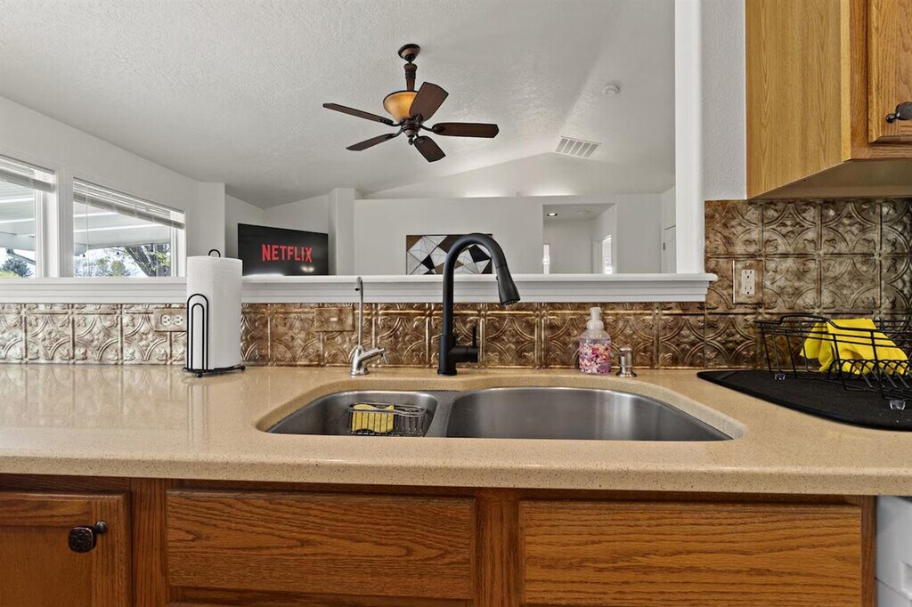 Stay in this welcoming and beautiful home in Boise, offering 1,500 sq ft of comfortable living space. Feel at home with fast Wi-Fi, ideal for remote work, and enjoy the large backyard. The property is professionally cleaned and sanitized, featuring a fully stocked and equipped kitchen, in-house washer and dryer, and self check-in. Conveniently located just 5 minutes from the Interstate, with easy access to Meridian, Boise, and Kuna. Guests love the professionally decorated space with unique furnishings and a warm ambiance. The private fenced yard with a gas grill is perfect for outdoor enjoyment. The home comfortably sleeps seven, with a king bed in the master bedroom, a queen bed in the second bedroom, and a full bed in the last room. The couch is also a decent size for sleeping if needed. Complimentary Wi-Fi, live TV, and coffee are provided. The kitchen is fully loaded with appliances including a microwave, fridge, stove, and dishwasher, along with glasses, mugs, dishes, and cutlery. Located just 5 minutes from the Interstate, this home offers easy access to Meridian, Boise, and Kuna, making it a convenient base for exploring the area. You're staying in a home, not a hotel, so please treat the place with respect. If any problems arise, action will be taken as soon as possible, but there is no one living on site 24/7. The property features easy self-check-in via a secure door keypad, with keyless entry provided after booking. Note that profiles with a review rating lower than 4 stars will not be allowed to book instantly, and reservations may be canceled if confirmed through the system. New profiles without reviews will be subject to screening before confirmation. [SI]