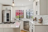 Bright and thoughtfully designed, this 2 bedroom, 2.5 bath condo offers a refined living experience in a highly convenient location. Featuring two spacious primary suites, each with a private en-suite bath, the layout provides comfort, flexibility, and privacy. Abundant natural light fills the home, highlighting the well-appointed interiors, updated appliances, and a gas range ideal for everyday cooking and entertaining. A separated living room and dining room, (with a wet bar) create defined, functional spaces, while the 2-car garage with Tesla charger adds exceptional convenience. Ideally situated near the highway for an easy commute and just minutes from Whole Foods, the farmers market, and an array of restaurants, this home combines modern comfort with an unbeatable lifestyle. MLS#326009165