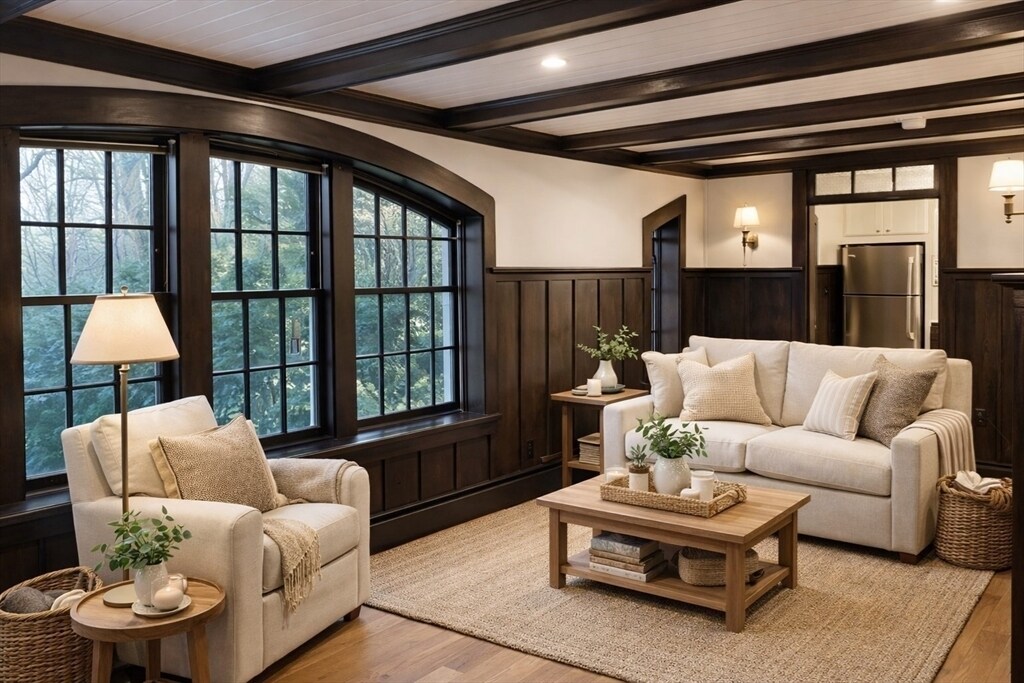 Welcome to this beautifully renovated garden-level 1-bedroom apartment offering comfort,style,and convenience. This apartment is located on the garden level of a 2 -family home. The living room has beamed ceilings accented by recessed lighting. Features include hardwood flooring,a sleek,modern kitchen equipped with stainless steel appliances,a dishwasher,and ample cabinetry. Enjoy everyday convenience with in-unit laundry,central air conditioning,and one off-street designated parking space. Ideally situated near Newton Corner and Newton Centre with easy access to Boston,major commuting routes,shops,restaurants and the Boston College School of Law. No smoking and no pets permitted. MLS# 73488440