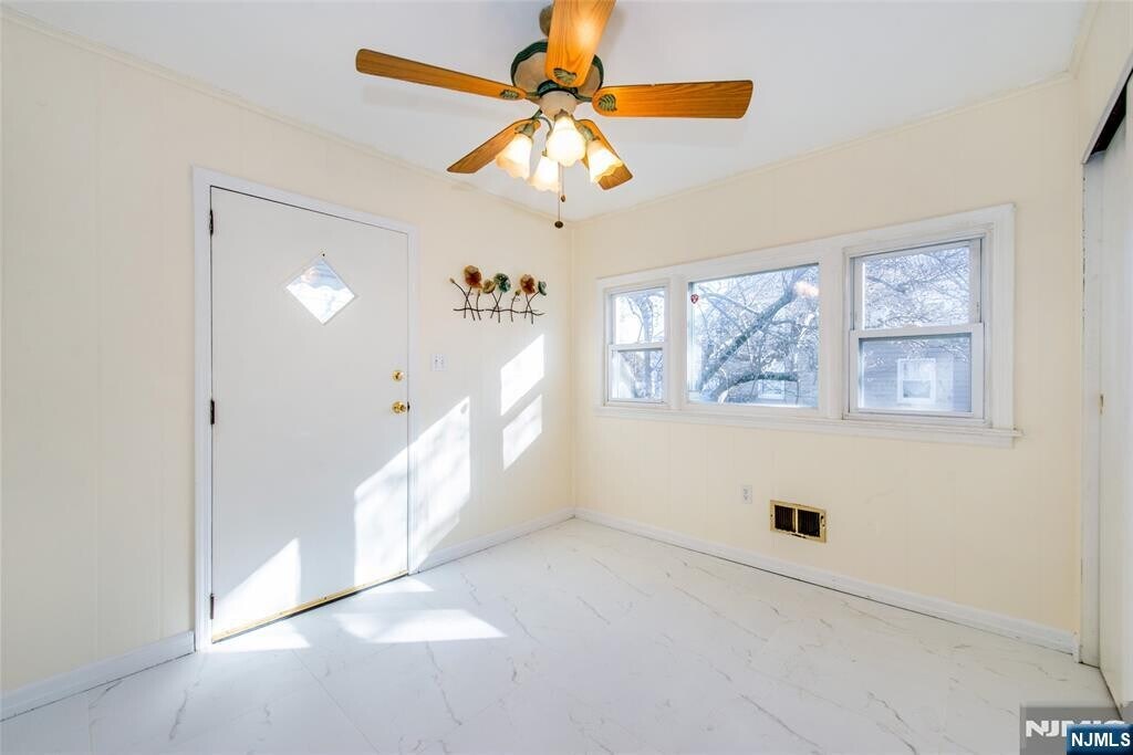 Lovely colonial in tree lined residential area with plenty of natural sunlight welcomes you. Corner house with fenced in private yard. Plenty of space to spread out and enjoy this comfortable home with an updated kitchen, updated full bathroom plus three bedrooms, living room, dining room, breakfast room, den, and finished basement space with a powder room. Central air. Perfect commuter location. Close to train, bus,and highways to NYC, Newark, and Jersey City. Well rated school district. The landlord will take care of landscaping. Tenants responsible for snow removal. Fireplace is decorative only. No pets.