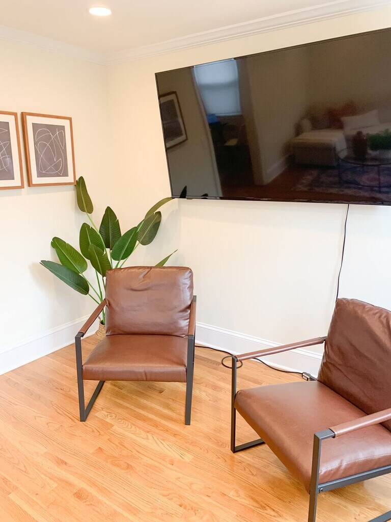 Feel at home in this amazing single-family home located in a cute and quiet neighborhood on the line between Scarsdale and Eastchester. Enter through the front door to the living room, which features a comfy sofa and a 60" TV, with additional seating. Walk through the living room to the dining room with seating for six, which also provides access to the kitchen and a half bathroom. Downstairs, you'll find extra storage, extra sleeping options, laundry, and the garage. On the second floor, you'll find two bedrooms with a full bathroom. The backyard is beautiful and a great place to have a cup of coffee in the morning or enjoy the quietness of the evening. This home is a 3-minute drive to downtown Scarsdale and a few minutes from Eastchester center. It is about a 10-15 minute walk to downtown Scarsdale and the Scarsdale train station, and a 10-minute walk to CVS and a few other stores in Eastchester. While driving/Uber is the best way to get around, you could also bike, take the bus, or even a scooter. This is a quiet neighborhood and we would like to respect that. No parties, events, or gatherings are permitted. This is strictly a quiet space to get away and should not be used as anything else. [SI]