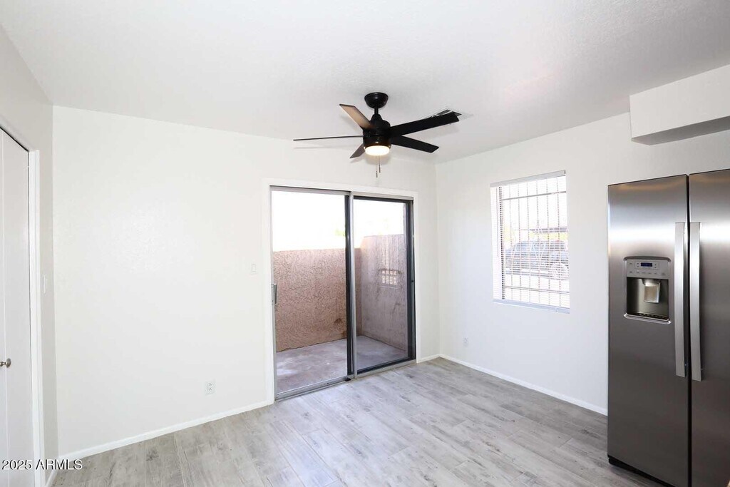 THIS 1075sf 2-BDRM,2-FULL BATHS SINGLE LEVEL TOWNHOUSE w/1-COV'D PARKING SPACE INCLUDES COVERED & OPEN PATIOS PLUS FRONT PORCH SITTING AREA. LOCATED NEAR COMM. POOL/SPA w/RAMADA. BOTH BEDRMS w/WALK-IN CLOSETS & COV'D PATIO ACCESS. MASTER INCLUDES PVT FULL BATH w/TUB-SHOWER & ONE SINK. BDRM 2 INCLUDES DIRECT ACCESS TO HALL BATH ALSO w/TUB-SHOWER & ONE SINK. LARGE GREAT ROOM HAS WOOD BURNING FIREPLACE. KITCHEN INCLUDES OVERSIZED COUNTER w/BREAKFAST BAR,STAINLESS RANGE,DISHWASHER. FRIDGE +PANTRY,COAT CLOSET & LAUNDRY CLOSET,NEWER WASHER/DRYER. LARGE BRKFAST/DINING AREA OPEN TO PATIO w/ARCADIA DOOR. PORCELAIN WOOD look TILE FLOORS THRUOUT. CEILING FANS. EASY ACCESS TO SHOPPING,EATERIES,MED.FACILITIES,ENTERTAINMT,GOLF,202 & 101 FWYS+MORE * NO CATS * NO BIRDS * NO SMOKING * NO VAPING *