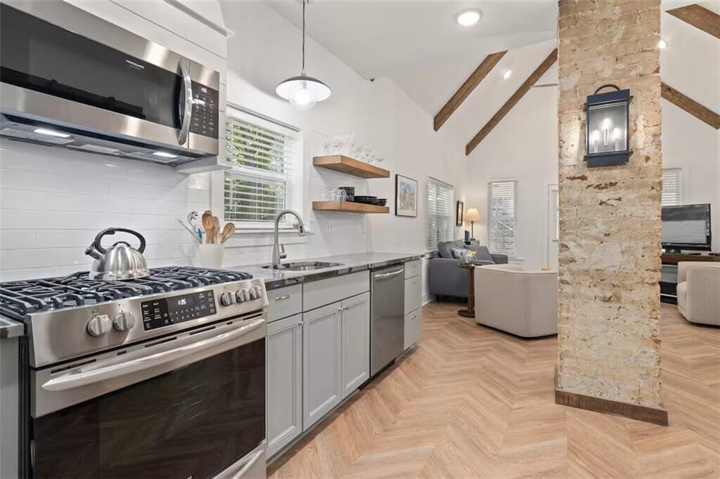 One bedroom 1930's home in downtown Fayetteville's Art District on Razorback Greenway Trail. Just blocks to town square, Dickson Street and across from Blair Library Completely remodeled. Tree top views from bedroom and living room. Home is secluded down path and drive with off-street parking in lot above or outside of gate. MLS# 1338575