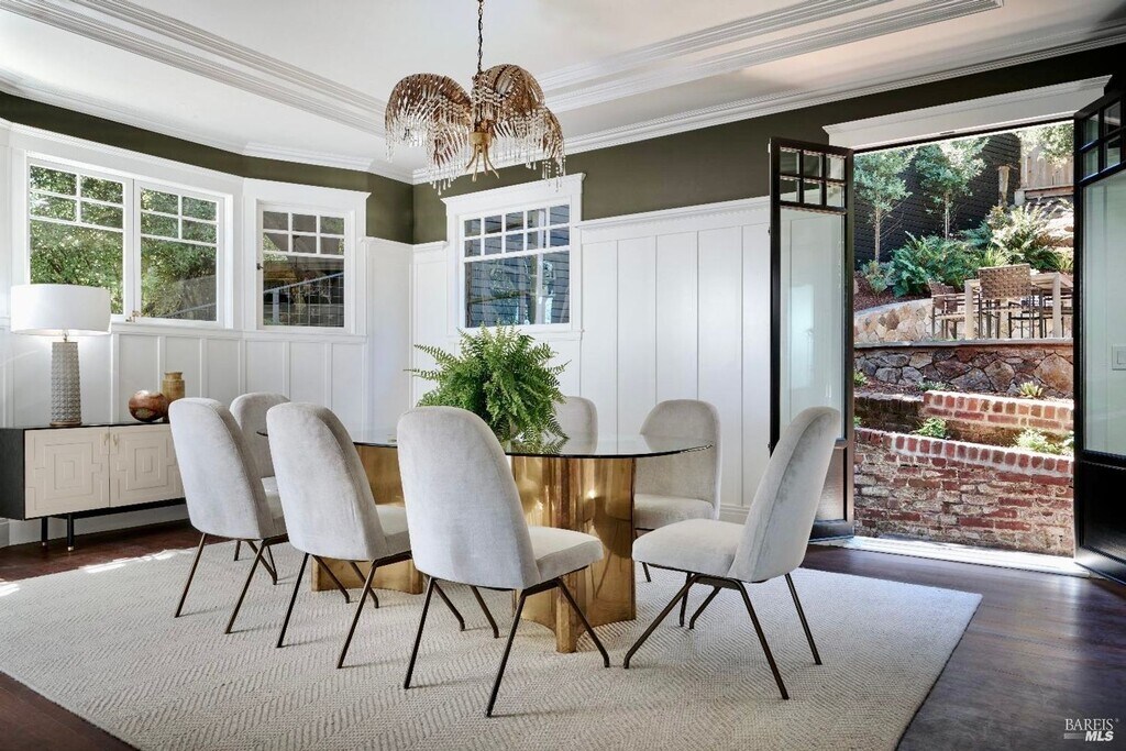 Set on a coveted lot in Sausalito’s desirable Banana Belt, this stunning UNFURNISHED, five-bedroom, two-and-a-half-bath California Craftsman beautifully combines timeless architectural detail with modern comfort. Framed by sweeping bay and forest views from nearly every window, the home captures the tranquil charm and effortless elegance that define life in Sausalito. Period details shine throughout—Douglas fir floors, box-beamed ceilings, wainscoting, and an expansive wraparound front porch create warmth and character in every room. The main level welcomes you with a grand entryway leading to an inviting and elegant space designed for entertaining—featuring a formal living room with stunning picture windows, a large fireplace, and a sophisticated spacious dining room perfect for memorable gatherings. The French doors lead to a covered porch and patio for seamless indoor-outdoor living. The kitchen is fully updated featuring all your much needed modern appliances, plenty of counter and cupboard space and a modern coffee bar. A full laundry room is adjacent for convenience. Upstairs, discover five bright bedrooms with gorgeous flooring, high ceilings a charming balconies off the primary and secondary bedroom featuring bay and forest views. The lower level offers a flexible family/bedroom/playroom with a built in wet bar and separate wine storage and tasting room. One full bathroom is also located on this level as well as exercise room featuring a sauna. BONUS: A detached garage with two car parking and a loft studio (accessible from Sweet Briar Lane) complete this exceptional property. Available now for a 6 month to 18 month lease. Lisa Kim Jones Luxury Leasing Specialist LKJ REALTY DRE #01711501