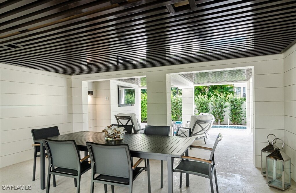 9th Street Villa II is a designer furnished luxury townhome that offers access to the ultimate downtown Naples lifestyle. Two light-flooded floors of living area are perched above your private covered outdoor living room and 2-car garage. The outdoor living room is furnished with a dining table that seats 6 as well as a plush sofa and chairs surrounding the outdoor TV and gas fireplace. Adjacent,find the water features which include a plunge pool/hot tub with waterfall and shallow paddling pool with deck jets. Out front is an uncovered sun deck with a gas fire-pit - the perfect place to sit outside on chilly evenings. Inside,the ground floor landing area has stairs and an elevator leading up to the main floor with living room,kitchen,dining room,powder room,laundry room and one guest suite. The master and second guest suite are on the third floor. The living rooms and master suite have Smart cable TVs. When you are ready to step out,you’ll find two beach cruiser bicycles stored in the garage,perfect for exploring the quaint Olde Naples area and cruising the 9 short blocks to the beach!