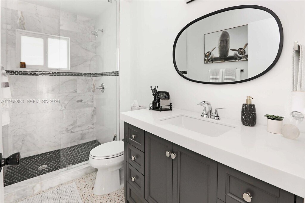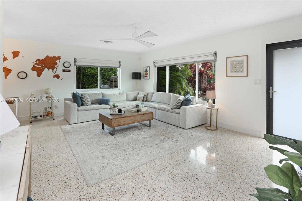 Step into timeless style and modern luxury with this beautiful 3 bed, 3 bath pool home just minutes from North Lake and the beach. This home has been meticulously maintained and thoughtfully upgraded through out the years, showcasing original terrazzo floors and an open floor plan perfect for entertaining. Enjoy a sleek newer kitchen with Italian two-tone cabinets, waterfall countertops, and stainless steel appliances. Featuring two primary en suites plus a guest bedroom and full bath, the layout is perfect for entertaining or hosting. Outside, your private tropical retreat awaits—complete with a gorgeous pool, summer kitchen, outdoor TV, lush landscaping and a shaded canopy. The Florida lifestyle at its finest! MLS # A11958884
