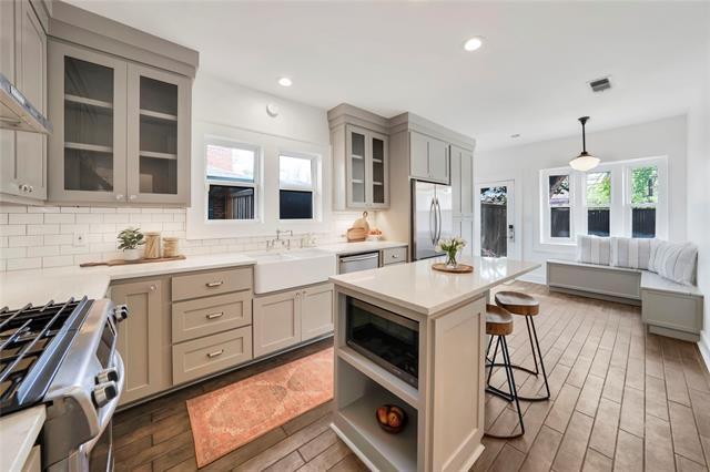 Stunning 3 Bed-2 Bath TUDOR home plus Detached Guest 1Bed-1Bath Guest House. Located among the Kessler Neighborhoods of Kessler Square & the historic Kings Hwy Conservation District, where architectural charm meets contemporary sophistication. From the moment you arrive, you'll be captivated by the elegant arches, stained glass window, and designer touches throughout. Inside, the light-filled kitchen boasts high-end appliances, exquisite quartz countertops, a farmhouse sink, and ample storage. The cozy breakfast banquette is bathed in morning sunlight, creating the perfect space to start your day. The living room features a striking brick fireplace wall, enhancing the warmth and character of the home. With no carpet throughout, the home exudes timeless appeal with a seamless flow. Retreat to the beautifully updated bathrooms, designed with classic elegance and luxurious finishes. The primary suite offers a private sanctuary, while the flexible floor plan, including a charming pool house, provides additional space for guests or a private retreat. Step outside to your private turfed backyard oasis, where a sparkling pool with a tranquil waterfall invites relaxation. Whether hosting friends or enjoying a quiet evening, the lush outdoor space is a true escape. Laundry hook-ups inside BOTH Main & Guest. Located just moments from Tiny Victories, Davis Street Espresso, and Lucia, this home offers the best of walkable urban living. Enjoy scenic runs along the Coombs Creek Trail and experience the incredible neighborhood spirit during the holidays. A rare blend of historic charm and modern luxury—don’t miss the opportunity to call this extraordinary home yours!