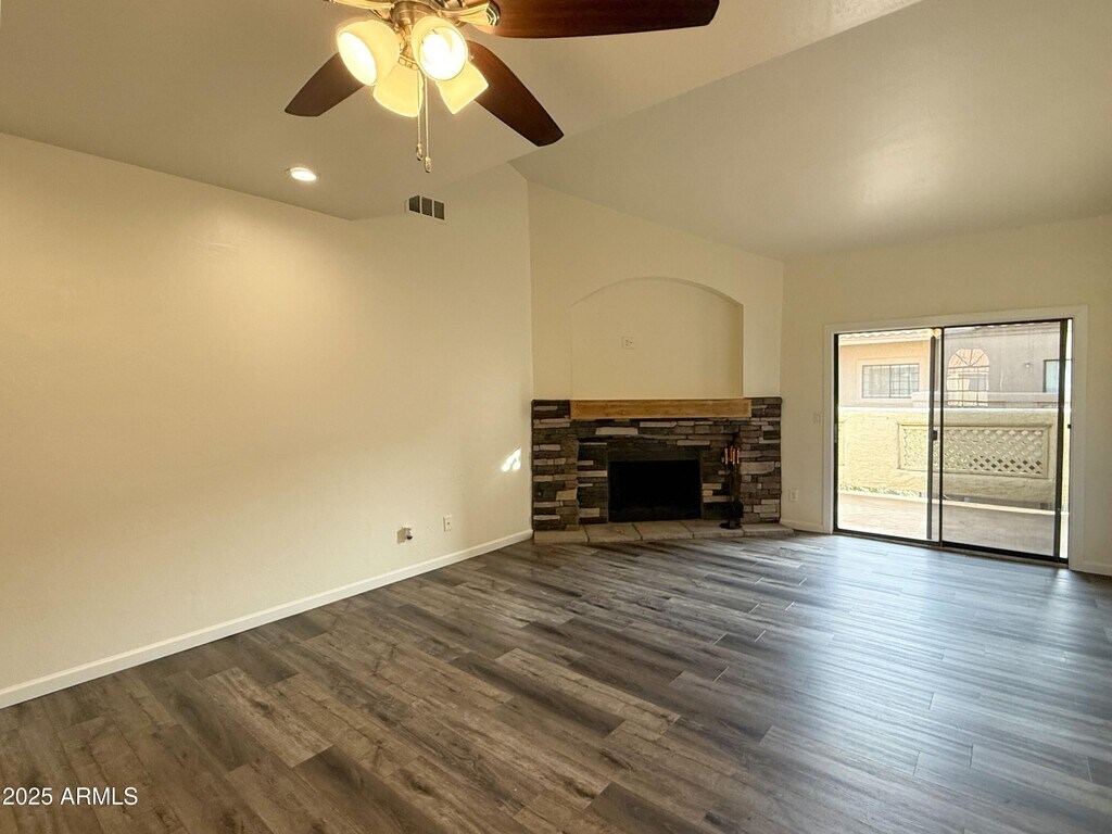 No Application Fees! Beautifully remodeled second floor 2 bedroom,2 bathroom Mesa condo located in the Villages at Park Centre Condominiums. This spacious open floor plan features vaulted ceilings,excellent natural light,and wood laminate flooring throughout with no carpeting. Interior upgrades include neutral paint,updated LED lighting,2-inch faux wood window blinds,and ceiling fans in each room. The large living room is centered around a cozy wood burning fireplace and opens directly to an oversized private balcony,creating a perfect indoor outdoor living space. The updated kitchen features quartz countertops and backsplash,refinished cabinets,a farmhouse sink,and stainless-steel appliances. The primary suite offers a walk-in closet and an updated private bathroom with new vanity and fixtures,while the second bathroom has also been fully updated. A full size washing machine and dryer are included for added convenience. Villages at Park Centre offers well maintained greenbelt areas,walking paths,and a large community pool and spa. The community is centrally located in Mesa near downtown,ASU,Mesa Community College,and light rail access. Enjoy nearby shopping,dining,parks,and easy access to Loop 202,Loop 101,and US 60 for convenient commuting throughout the East Valley. All Denali Real Estate residents are automatically enrolled in the Resident Benefits Package (RBP) for $55.00/month which includes Renter's Liability Insurance,Credit Building to help boost the resident's credit scores with timely rent payments,up to $1M Identity Theft Protection,HVAC air filter delivery (for applicable properties),our best-in-class resident rewards program,and much more!