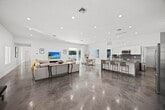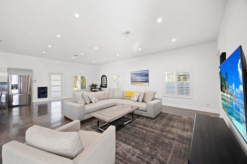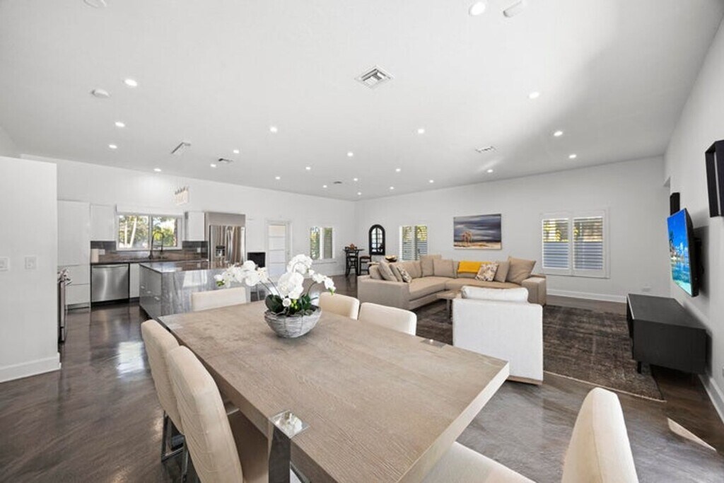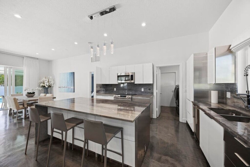 Courtesy of Compass Florida LLC. Beautifully renovated 3BR/2BA pool home featuring a spacious split floor plan and a designer kitchen with oversized island, stainless steel appliances, and custom storage. Expansive sliding doors fully retract to create seamless indoor outdoor living. Both bathrooms showcase luxe Toto Neorest toilets, complemented by impact windows and an automated pool screen. Enjoy a lush, private backyard with a resort-style pool and an oversized circular driveway. No HOA. Prime East Boca location just minutes from Mizner Park, FAU, beaches, fine dining.