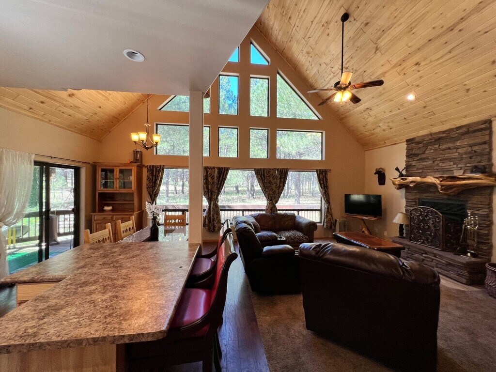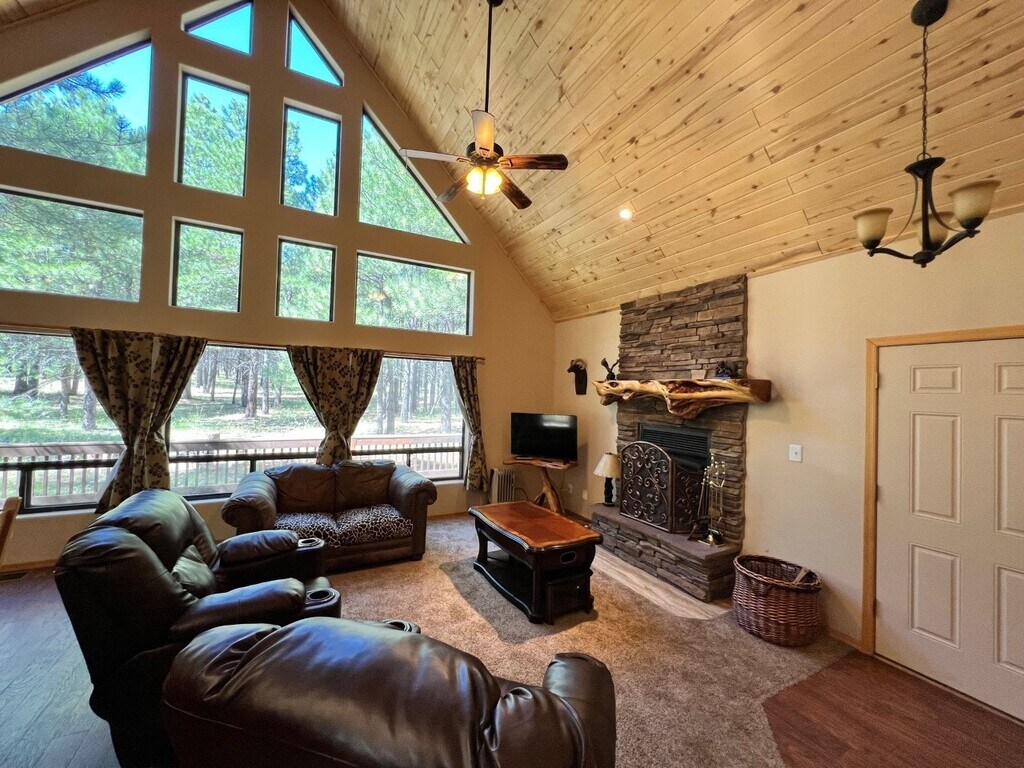 Breathtaking 3 bedroom, 2 full bathroom 2 story fully-furnished home with a loft situated in the spectacular high pines of Forest Lakes available for move in March 1st! The chalet style design of the home has windows in all the right places to take full advantage of the serene scenery, tongue and groove ceilings, and a comfortable mix of wood flooring, tile and carpet throughout. Cozy up to the living room fireplace as you watch the snowfall in the Winter, and bring your fishing poles, kayaks, paddle boards, UTVs/ATVs, and enjoy all that the rim country has to offer with nearby lakes, hiking and off-roading trails in the Summer. The spacious floorplan features a separate dining area and a sizeable kitchen with ample cabinet storage space and a large island. Add to that an oversized two-car garage, wrap around deck & endless incredible views, and this house is ready for you to call home. This property is available for a 12 month lease term, so whether you're looking to relocate full-time or to have a second home for your weekend getaways, the cool weather and tall timbers of Forest Lakes are waiting for you. Water, sewer and trash service included. Listed by Firefly Property Management, LLC. To view a brief walk-through video tour of this property, please copy and paste the following link into a new browser window:
