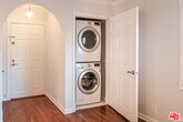 Feels like a home. This 3-bedroom, 2-bathroom light & bright upper unit has everything you need + the location is ideal! Second floor unit (no one above/no common walls), step into an open floor-plan with living room, dining area & gourmet kitchen. Natural bright light with good size window from the living room + balcony off the dining area. Gourmet kitchen with stainless steel appliances, built-in desk & a dry bar which can be used for anything! Primary suite with attached balcony, built-in vanity area, walk-in closet & lots of natural sunlight. Two other bedrooms and updated second bathroom in hall complete the unit. Hardwood floors in the entertaining areas, carpet in bedrooms, recess lights, central AC, alarm system, window treatments, custom closets, stackable in-unit washer/dryer + 2 tandem uncovered parking spots. Community barbecue & outdoor dining area in the back of the building. Individual storage closet in garage area. Adjacent to B.H., close to La Cienega Park & Tennis Club & a few blocks from the trendy Robertson Blvd. Management that truly cares is what makes this building so special. Come Check It Out! MLS# 25590651