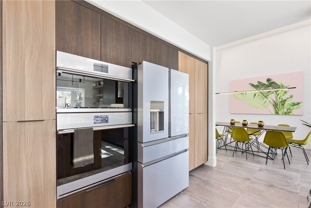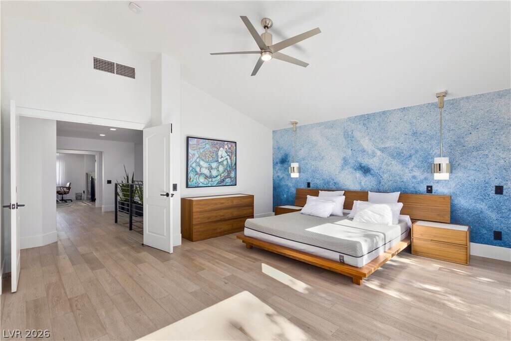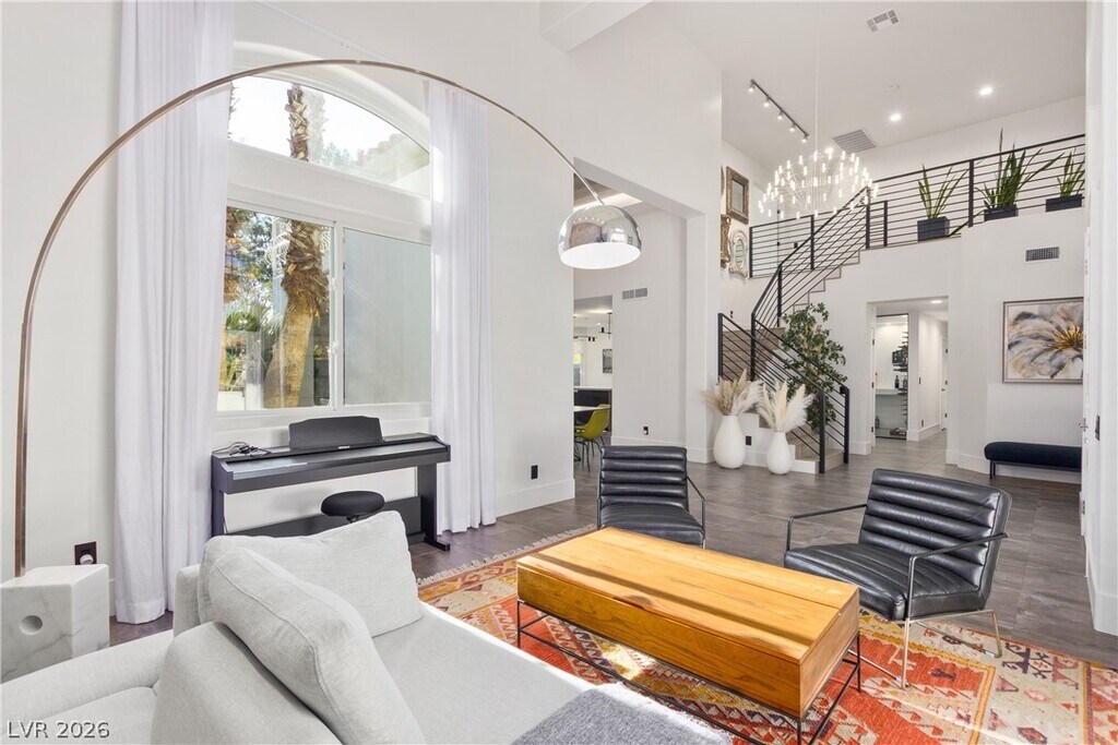 Exquisite fully furnished home! This stunning property boasts 4 spacious bedrooms, 3 modern bathrooms, and a versatile loft, offering the perfect balance of luxury and comfort. Sitting on an expansive 25,000 sq. ft. lot, the outdoor space is a true oasis. Enjoy your own private pool and spa, surrounded by lush artificial turf, perfect for entertaining or relaxing in the hammock in the Las Vegas sunshine. Inside, the European-inspired kitchen features upgraded stainless steel appliances, sleek quartz countertops, and a striking glass wine enclosure. The master suite is a sanctuary with its own large private balcony, while the luxurious master bathroom offers a freestanding tub, perfect for unwinding. Located just minutes from top-tier dining, shopping, and entertainment, this home blends elegance, comfort, and convenience. Whether you're enjoying a quiet evening at home or hosting a gathering, this property is designed to impress.
