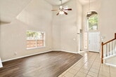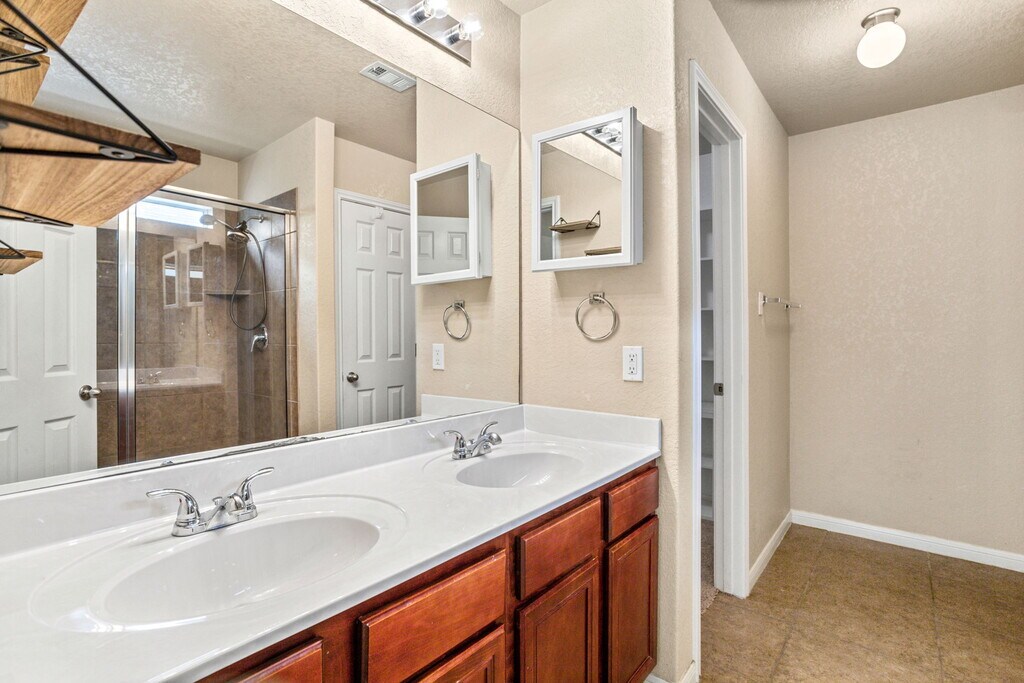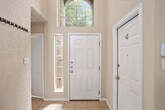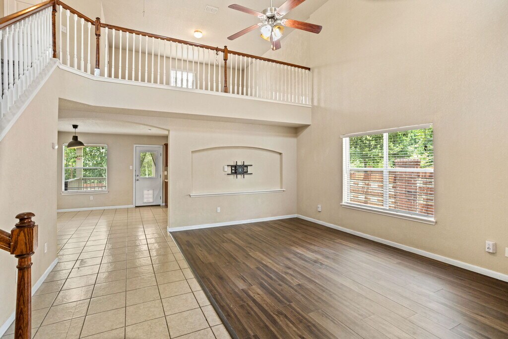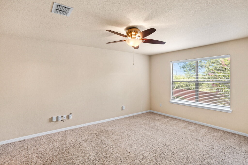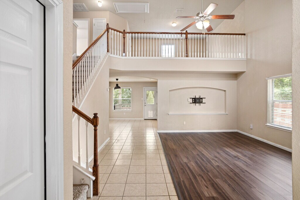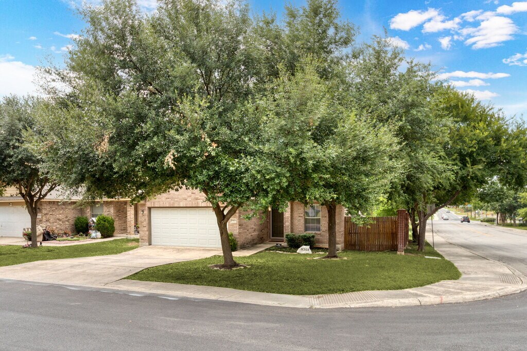 Welcome to your ideal sanctuary, a beautifully designed 3-bedroom, 2-bathroom home with a single-car garage, perfectly nestled in a prime location offering unparalleled convenience and comfort. This stunning property features the master suite conveniently located on the ground floor, ensuring privacy and ease of access. The master bath is a true retreat, boasting dual vanities and an expansive walk-in closet, providing ample space for all your needs. Upstairs, you'll find two additional bedrooms along with a vast game room/loft area, perfect for entertaining or creating a cozy relaxation zone. The high ceilings throughout the home add to the airy ambiance, while ceiling fans keep you comfortable year-round. Enjoy cooking in the modern kitchen equipped with essential appliances including a microwave, refrigerator, dishwasher, and disposal. Both washer and dryer connections are ready for use, complemented by the inclusion of a washer and dryer for your convenience. Situated on a corner lot, this home offers extra privacy and an expansive backyard perfect for outdoor activities or simply relaxing in your personal oasis. Additionally, the community park is right across the street, providing easy access to recreational activities and leisure. Pet lovers will appreciate that this home is pet-friendly. Beyond the serene environment of your new home, you'll benefit from quick access to Lackland AFB, Loop 1604, as well as shopping centers and dining options just around the corner. Don't miss out on this unique opportunity to own a home that perfectly combines comfort, convenience, and style. Schedule your viewing today and step into the lifestyle you've been dreaming of!