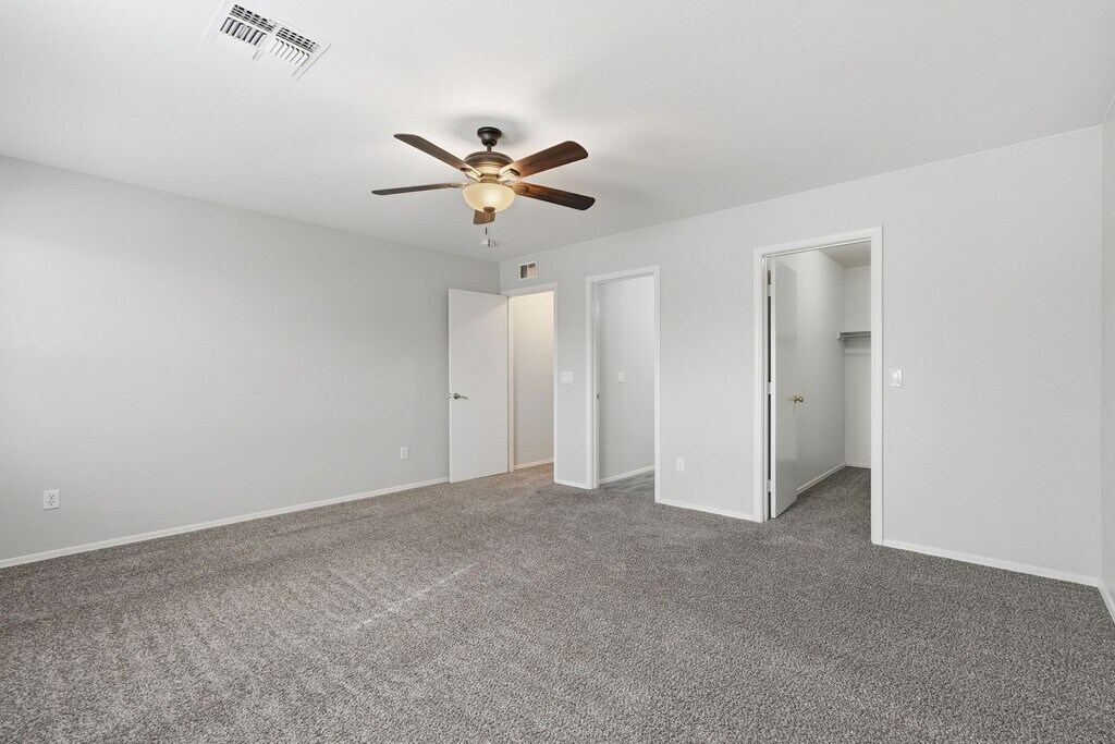 new paint, new carpet, new plank flooring in bathrooms and hall, new stainless-steel appliances in kitchen, new blinds, new fans, ready for new family. this home has 6 bedrooms, 2 masters, separate living room, huge great room, and loft. all bedrooms are oversize, all with walk in closets that are big also,