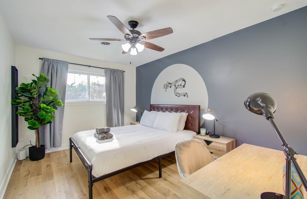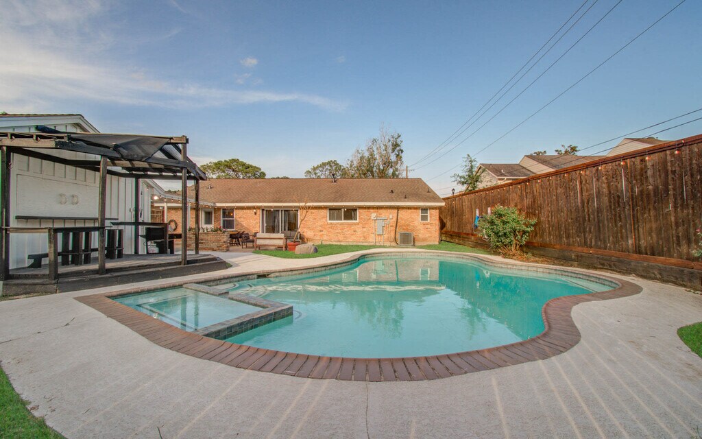 Welcome to this stunning 4-bedroom vacation home where you'll feel at home! This retreat features a delightful open floor plan with sleek modern finishes and curated comforts. The fully equipped chef’s kitchen features stainless steel appliances, elegant cabinetry, and a kitchen island. The living room offers a comfortable sectional, coffee table, designer rug, a flat-screen TV, and high-speed Wi-Fi. The backyard features a swimming pool, basketball hoop, fire pit, and patio with an outdoor dining area and BBQ grill. A washer and dryer are available for your use. House-trained pets are welcome with a non-refundable pet fee of $150 per pet (maximum of 2 pets per stay). Free parking is available in the garage, on the driveway, and on the streets. Located minutes from good food, great drinks, and attractions in the desirable Woodshire Brittany neighborhood, this home is conveniently near Hwy 610, providing easy access to Houston’s many attractions. Nearby attractions include The Galleria, Houston City Centre, and Memorial Park. Smoking of any type is not allowed and violations are subject to a $450 fine plus the cost to clean, deodorize, and repair damages. Parties or large unauthorized gatherings are not allowed. Only registered guests are allowed on the property. Full disclosure of the number of people on the property at any time is required. Check-in is at 4pm and check-out is at 10am. Registration Number: STR-2025-000710 [SI]