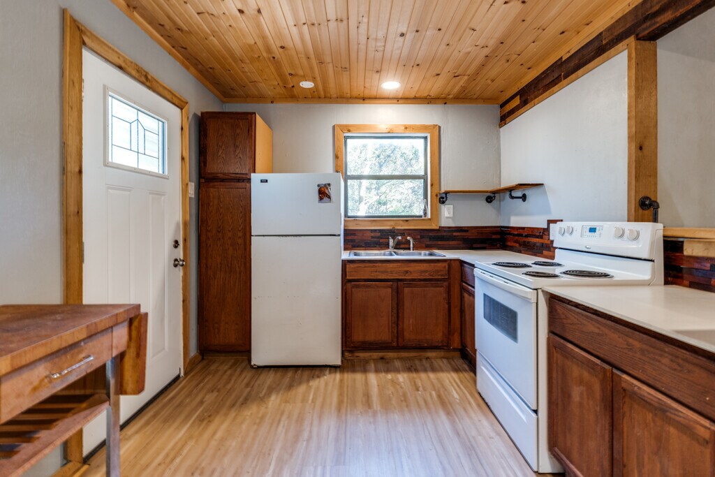 Private Hill Country Oasis near Canyon Lake Escape to your own slice of Texas Hill Country heaven at this charming, secluded property located near the desirable North End of Canyon Lake. Nestled on 2.5 acres of heavily treed land, 931 Hallmark offers unparalleled privacy, a cozy main residence, and fantastic outdoor amenities designed for peaceful living. Key Features of the Main Home & Property: Cozy & Inviting Living Space: The 1200 sq. ft. main home offers a warm and intimate atmosphere, centered around a beautiful rock fireplace feature in the living room - perfect for chilly evenings. Ultimate Privacy: A long entry driveway sets the home well away from the road, providing a quiet, private sanctuary surrounded by mature trees. Outdoor Living & Entertaining: Step onto the large deck to enjoy serene views of the expansive back property, ideal for morning coffee, evening relaxation, or entertaining guests. Hobby Farm Ready: The property includes a dedicated chicken-coop pen, perfect for those dreaming of fresh eggs and a sustainable lifestyle. Guest Accommodations & Amenities: Detached Efficiency Quarters: A separate, private efficiency unit provides a comfortable space for guests, complete with its own kitchen and full bath. This versatile space is also perfect for a 2nd home office or studio. Ample Parking: A large front parking area provides plenty of room for vehicles, boats, and RVs. Location Highlights Canyon Lake Access: Enjoy the recreational opportunities of Canyon Lake with Boat Ramp 18 just a short 10-minute drive away. Quiet & Scenic Area: The home is situated in a tranquil neighborhood, offering a peaceful retreat while still being close enough to local amenities. This property is a rare find for those seeking a quiet, private lifestyle with the added guest flexibility and proximity to one of Texas's most beautiful lakes. Schedule your showing today and discover the peace and serenity waiting for you at 931 Hallmark!