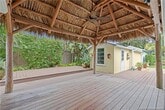 Charming,meti?ulou?l? upgr?ded Ke? W??t-style home in ?lde ?alm City,FL. 3 beds,2 baths,a spacious living/dining area. The kitchen boasts stainless steel appliances,granite countertops,and ample cabinet space. Throughout the home,beautiful laminate flooring and authentic limestone enhance the living spaces. Step outside to discover a large fenced-in yard,oversized wooden deck,Tiki Hut,& fully screened porch for entertaining. A large shed w/AC serves as a workshop or she-shed,while an additional shed provides extra storage. Also find a convenient laundry room with full-size washer and dryer. This property is close to The Indian River and 15 mins to the Beaches. Rent includes water,pest control,and lawn care. Small dog under 30lbs may be considered. MLS# M20052097