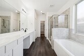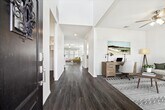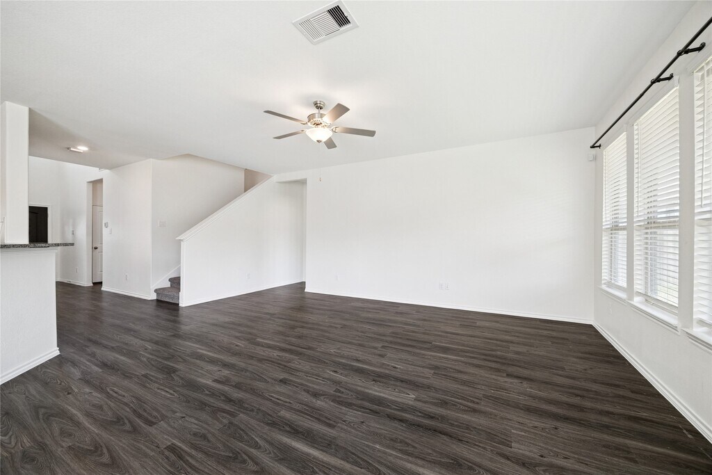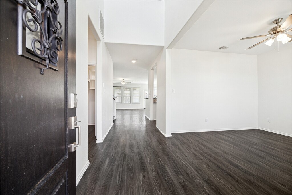 Zoned to sought-after Shadow Forest Elementary,9310 Victoria Valley Court offers a highly functional layout in the quiet Royal Brook community. Built by Lennar in 2020 and located just around the corner from Hueni Family Park,the home enjoys easy access to green space,walking trails,and neighborhood amenities. The first floor features a formal dining room and an open concept living area centered around a spacious kitchen with a large breakfast bar. Vinyl flooring runs throughout the living spaces,offering durability and easy maintenance. The primary suite is also located on the first floor,with oversized windows overlooking the backyard and an ensuite bath featuring double sinks,a soaking tub,and a separate walk in shower. Upstairs,a large game room provides flexible space for a media setup,gym,or second living area. Three additional bedrooms,each with walk in closets,are complemented by two full bathrooms,completing the second floor. MLS# 67184975