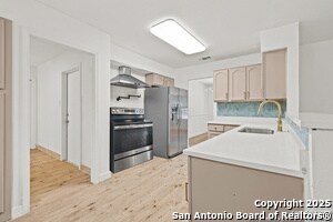 Contessa is a charming 1 story, 4 bedroom house nestled in the quiet neighborhood of Crownhill Park. This home has new floors, and fresh paint throughout. The master bath has recently been updated. Great location with a one minute drive to Loop 410. Walking distance to tons of shopping, dining, and entertainment at North Star Mall and La Plaza del Norte. The Quarry is a short 10 min commute. This lot is one of the largest in the neighborhood at over a third of an acre. Enjoy your time outdoors in the covere