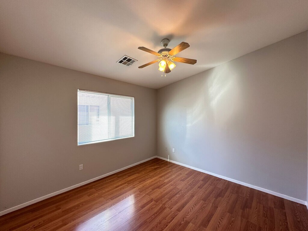 Lovely two story townhouse with its own backyard! 2 bedrooms and 2 bathrooms with a one car garage. Located in a gated community with a community pool and walking trails near Mountain's Edge. The whole house is freshly painted ***NO CARPET*** The price includes $80 for Water, Trash & Sewer.