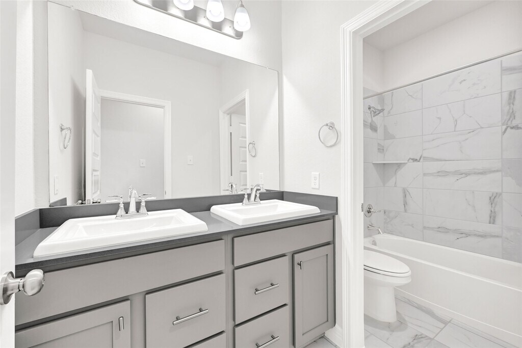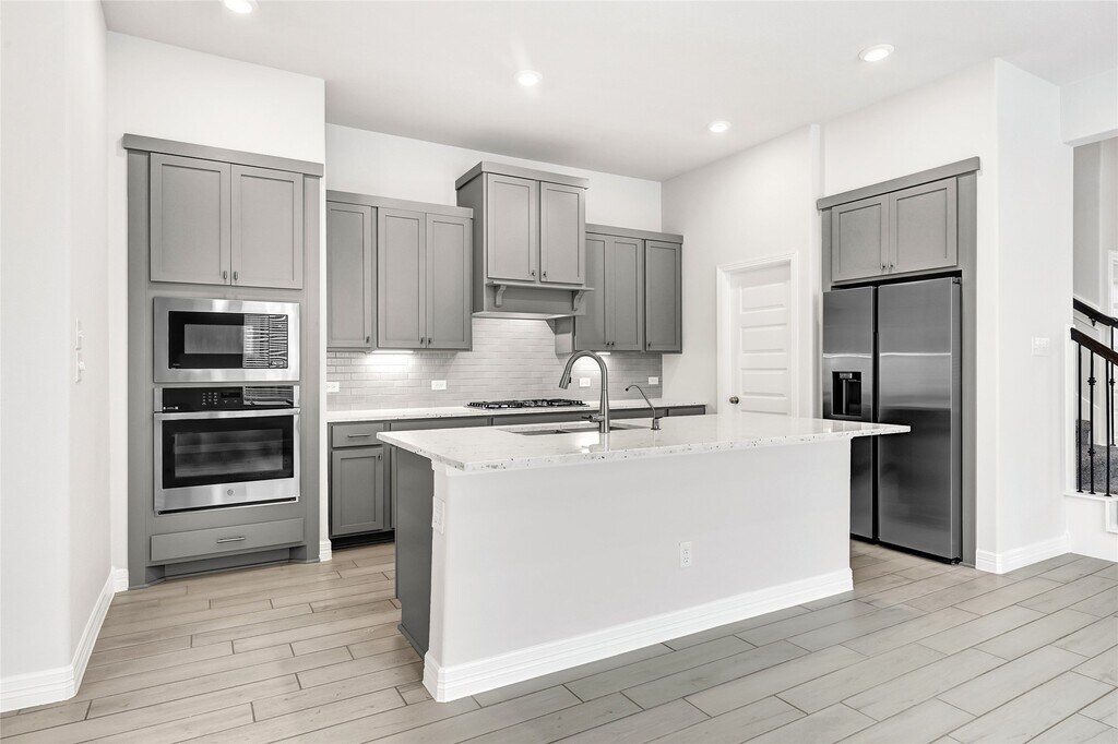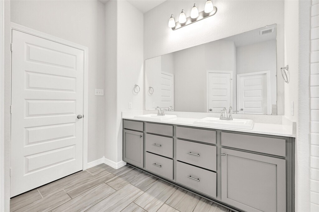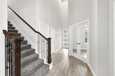 Step into elegance and everyday comfort in this 2-story Tri Pointe home located in the master-planned community of Lakes at Creekside. The striking stone & brick exterior w/ tandem 3-car garage sets the tone for the beauty inside. Wood-look tile flooring flows throughout the main level,where an open-concept design brings together the vaulted living room,casual dining,home office,& chef’s kitchen. The kitchen is the heart of the home w/ its oversized granite island,gas cooktop,shaker cabinetry,stainless steel appliances,under-cabinet lighting,& water filtration; perfect for entertaining. The first-floor primary suite offers a relaxing retreat with dual vanities,soaking tub,subway-tiled shower with bench,and an expansive walk-in closet. Upstairs,a spacious game room,two bedrooms,and dual-sink bath provide plenty of room for everyone. Outside,enjoy the covered patio and the lifestyle Lakes at Creekside offers with 8 lakes,trails,pool,fitness center,& more. MLS# 92061289