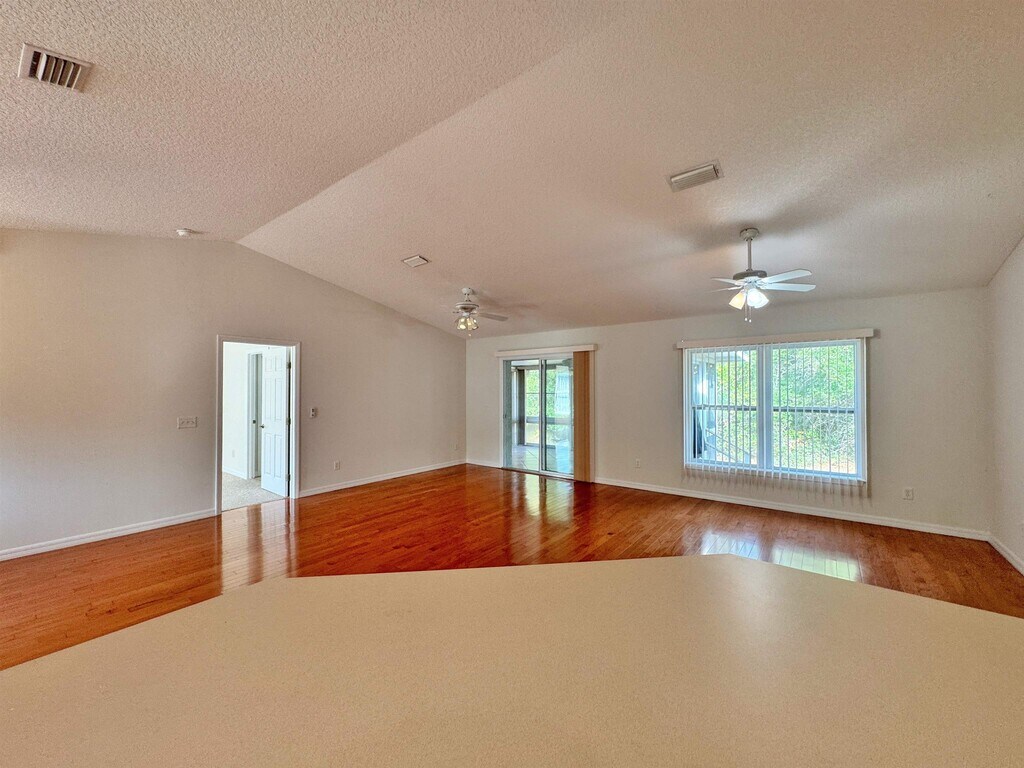 Nestled just off Wildwood Dr., this beautifully maintained home boasts fresh paint! Featuring hardwood and tiled floors, the open/split floorplan includes a dine-at/serving counter and a spacious kitchen. The living room opens to a glass/screened lanai and an extended patio. The primary suite offers a luxurious tub, walk-in shower, and a generous walk-in closet. There are two roomy guest bedrooms, a large laundry room complete with courtesy washer and dryer, and a 2-car garage. The property is adorned with a stone entry garden on a cul-de-sac street. Conveniently located, it's just a quick trip to The Shores shopping and dining district, with easy access to C.R 207 & I-95, and only 12 minutes from the Historic District and beach.