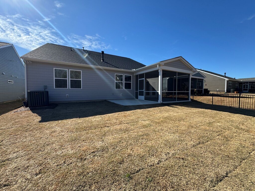 Enjoy low-maintenance living in this spacious 1.5-story home located on a quiet cul-de-sac within a desirable 55+ community. Designed with both comfort and functionality in mind, this home offers a flexible layout and inviting living spaces throughout. The main level features a generously sized primary suite with a private bath and ample closet space. Two additional bedrooms and a full bath are also located on the first floor, along with a tucked-away office nook—perfect for working from home or hobbies. The kitchen offers a modern feel with quartz countertops, a large island, and plenty of cabinet space, opening directly to the main living area. A gas fireplace creates a cozy atmosphere, while the screened-in porch just off the living space provides a relaxing spot to enjoy the outdoors year-round. Upstairs, you’ll find an additional bedroom, full bath, and a spacious bonus room that can easily serve as a guest suite, media room, or additional lounge area. Residents of the community enjoy access to amenities including a pool and pickleball courts, adding to the active and social lifestyle. This home offers a comfortable blend of space, convenience, and community living in a peaceful setting. *One small dog is welcome (under 20 lbs), making this a great option for pet lovers.
