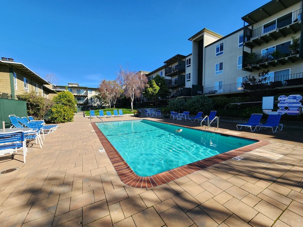 This lovely studio is about 500 square feet, it has an open floor plan and cozy kitchen area. Plentiful closet space throughout the unit and all wood laminate flooring. There is a spacious, fenced-in, private deck off of the kitchen area. Property faces an area pool and landscaped courtyard. Woodlake has fantastic amenities: pool, tennis courts, gym, Jacuzzi, saunas, e-vehicle charging and more. Water, garbage, 1 external storage and a parking space are included with rent. no pets, no smoking, 1 year lease. There is a 1-time HOA registration fee for new tenants, $150.