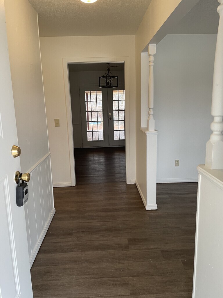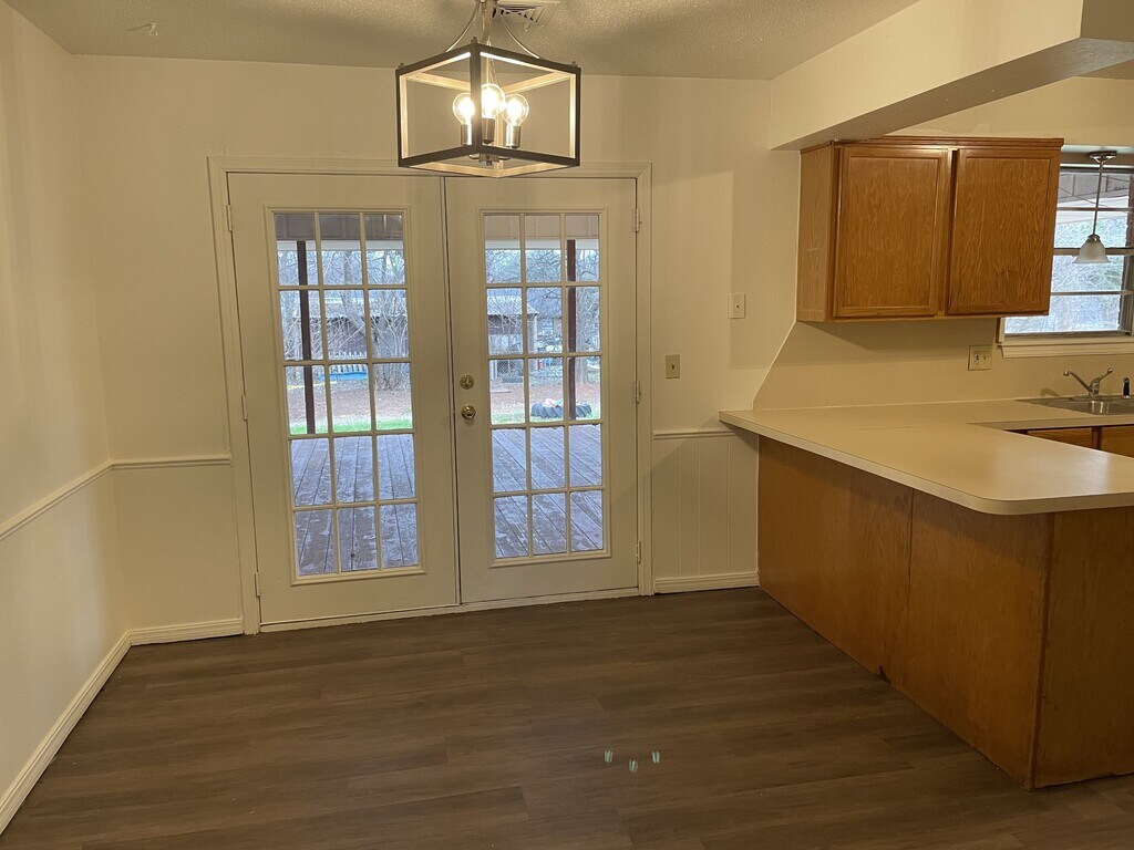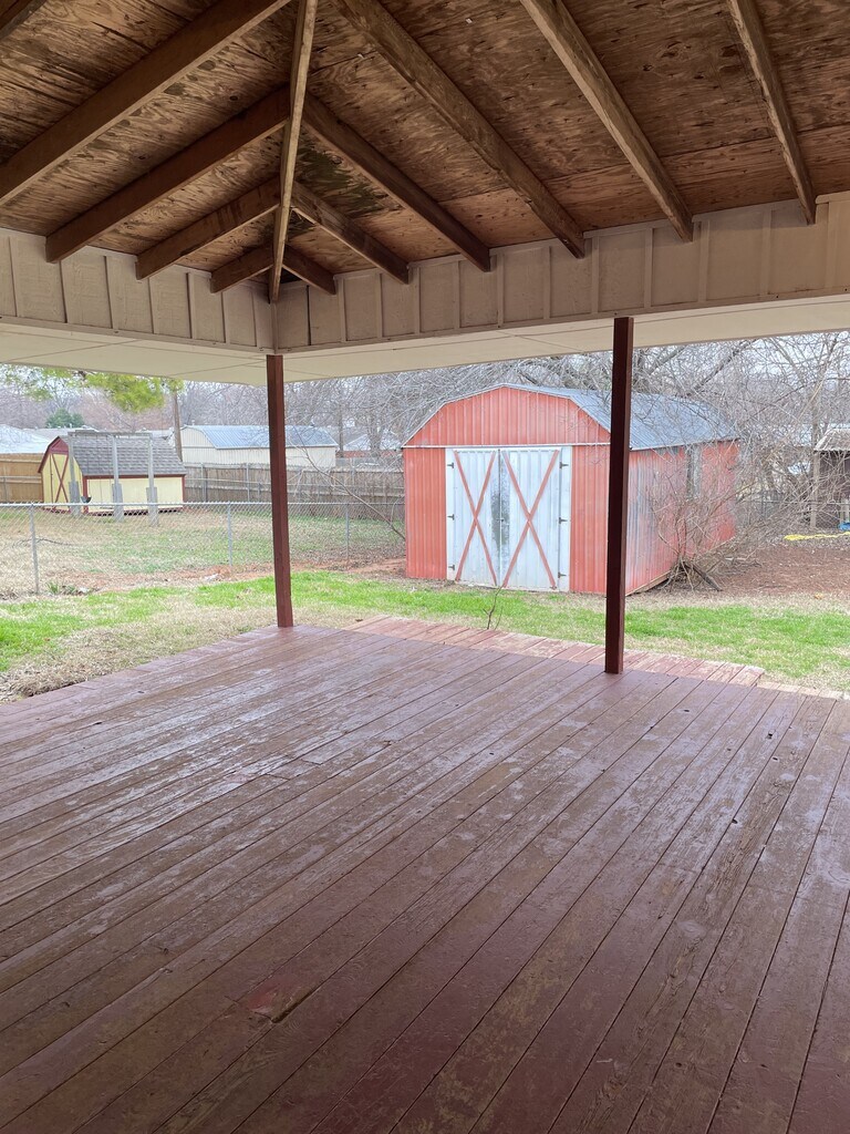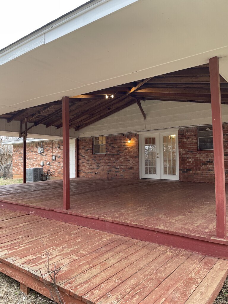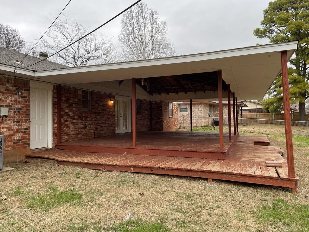 3 bed/2 bath light and airy home in Purcell features a refreshed interior with newly painted walls and ceilings and wood style flooring. French doors off dining area lead to a large yard and covered back porch to enjoy! New blinds and updated light fixtures. Located on quiet street with attached two-car garage with new automatic door. HVAC new in 2023. Clean and ready for your move!