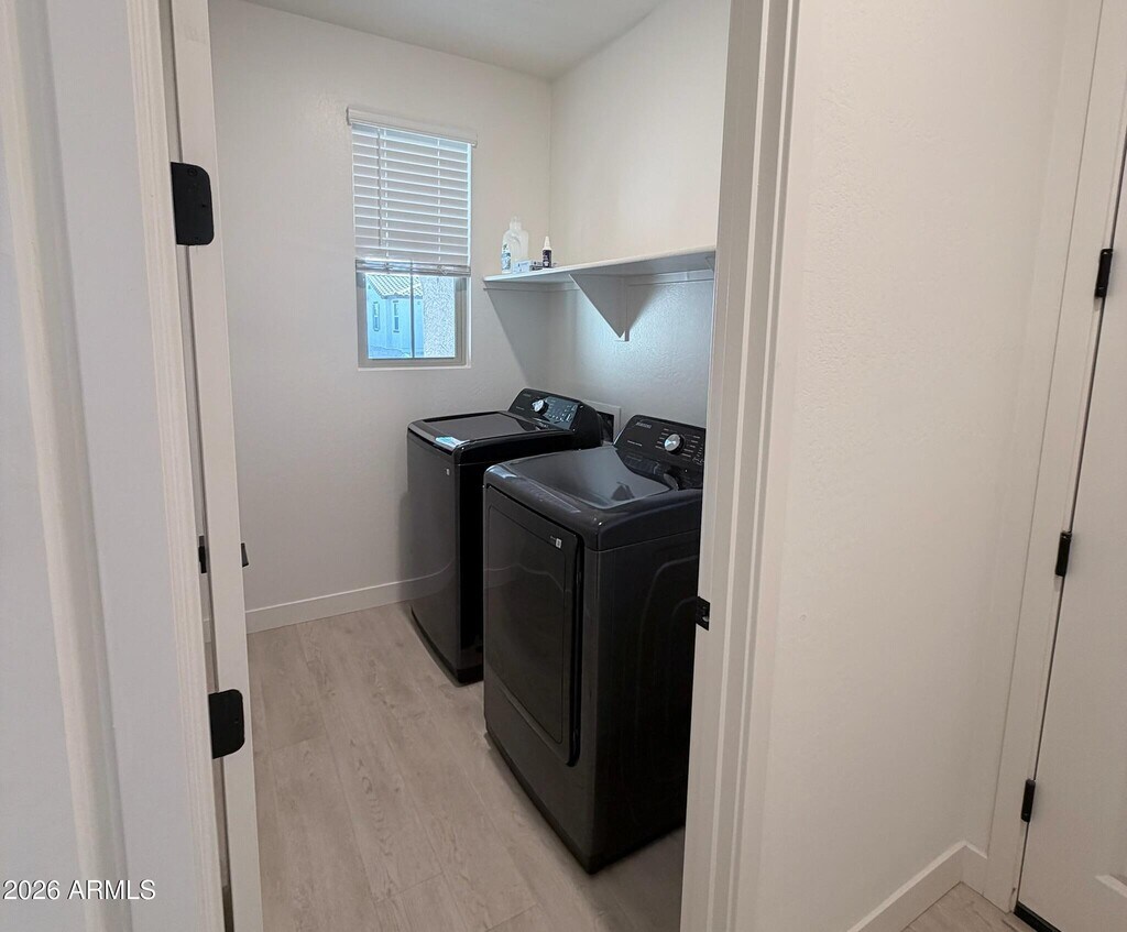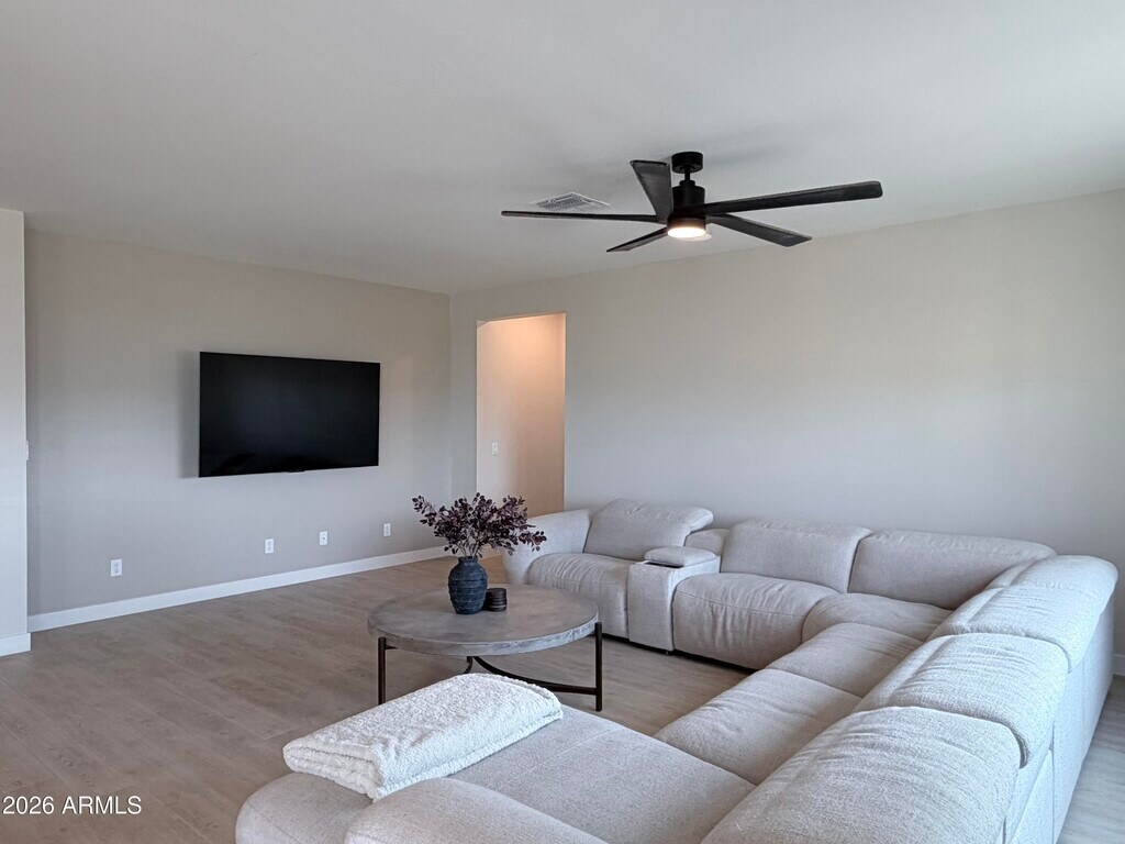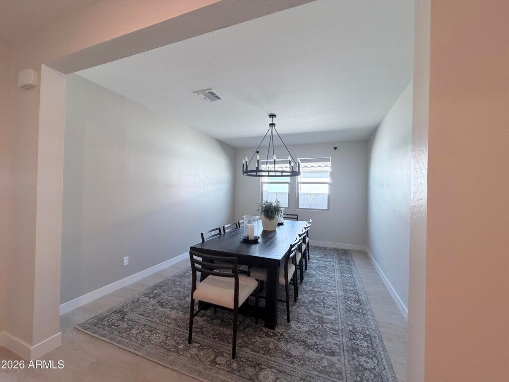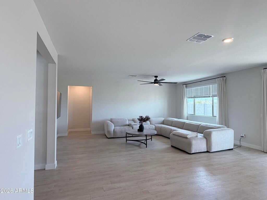 2024 new-build 3 bed,2 bath home offering 2,148 sq ft in a desirable gated South Mountain/Laveen community. Features split floor plan,9 ft ceilings,oak LVP flooring,and oversized primary suite with double vanity and large walk-in closet. Open kitchen with granite countertops,expansive cabinetry,and walk-in pantry. Home painted in 2026 in modern neutral tones prior to move-in. Fully fenced ~8,500 sq ft lot with 500 sq ft turf and extended patio. Washer,dryer & refrigerator included. Attached 2-car garage. Near Sky Harbor & 15-20 mins to Downtown. $2,650/mo. Small dogs considered; pet rent applies. You will not find a better rental in the area. This is true pride of ownership!