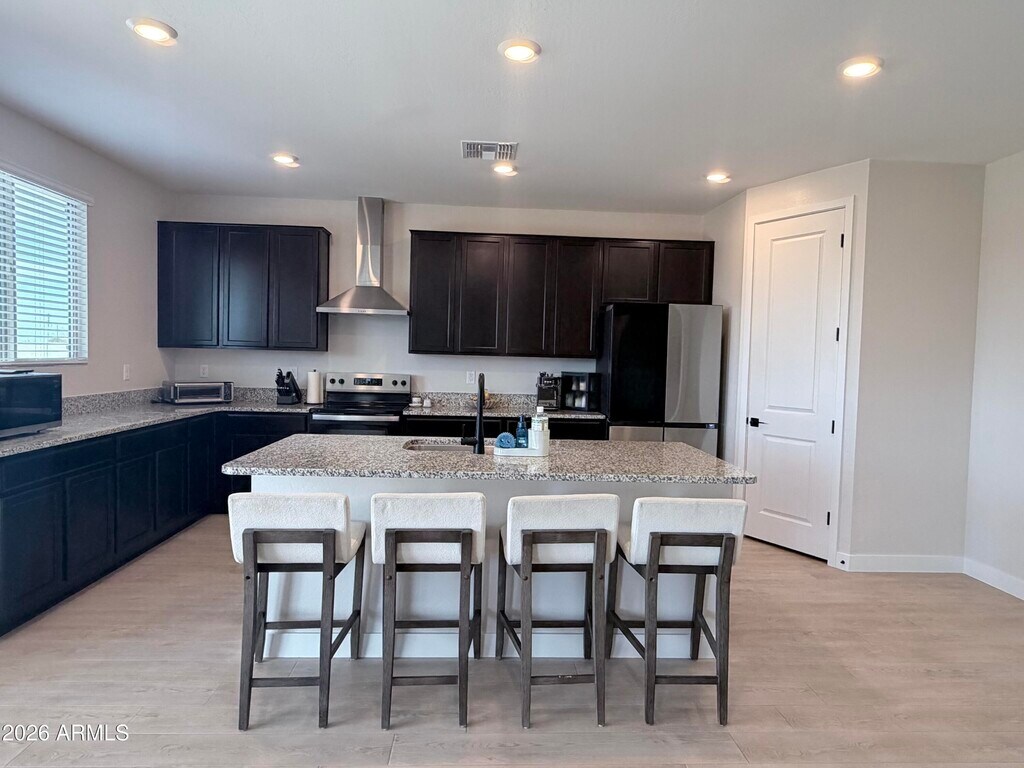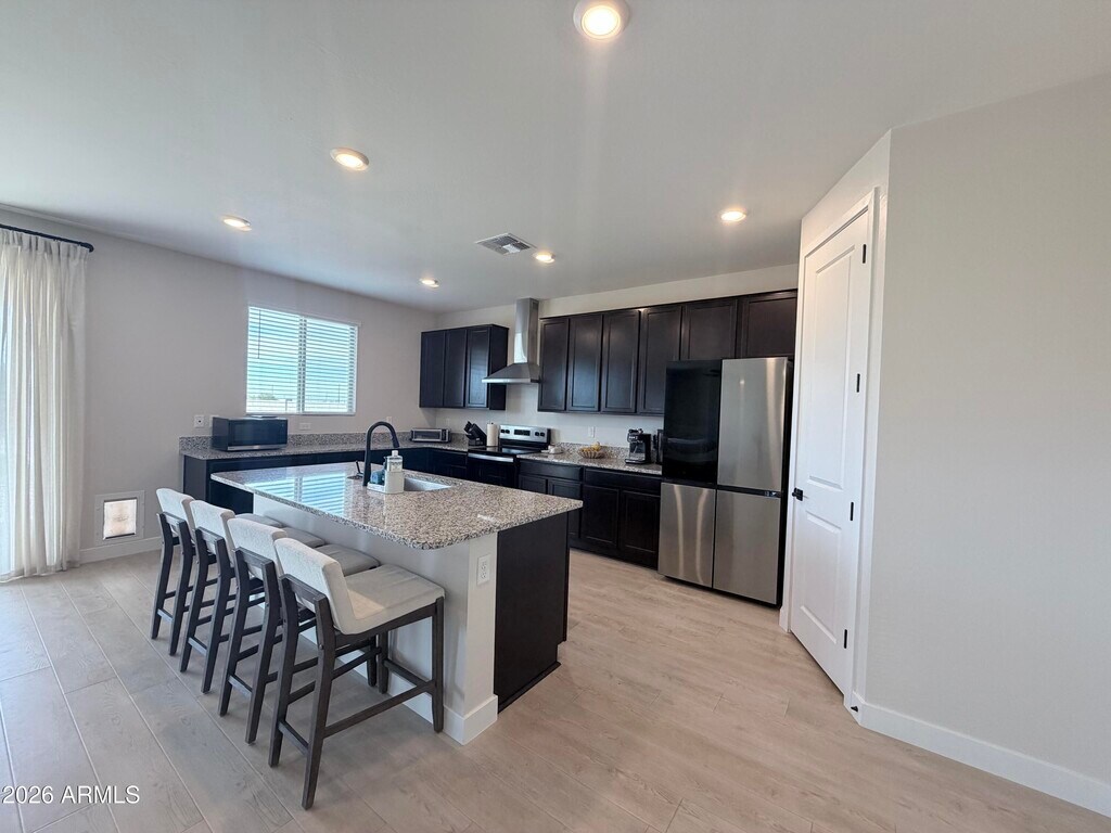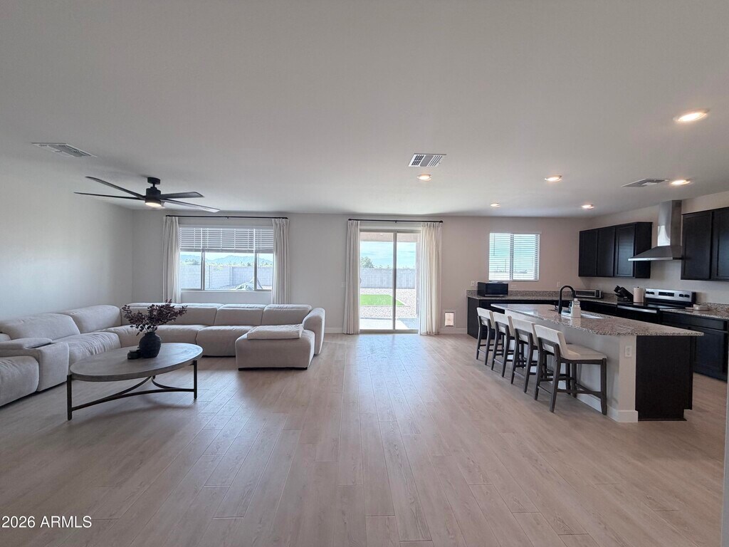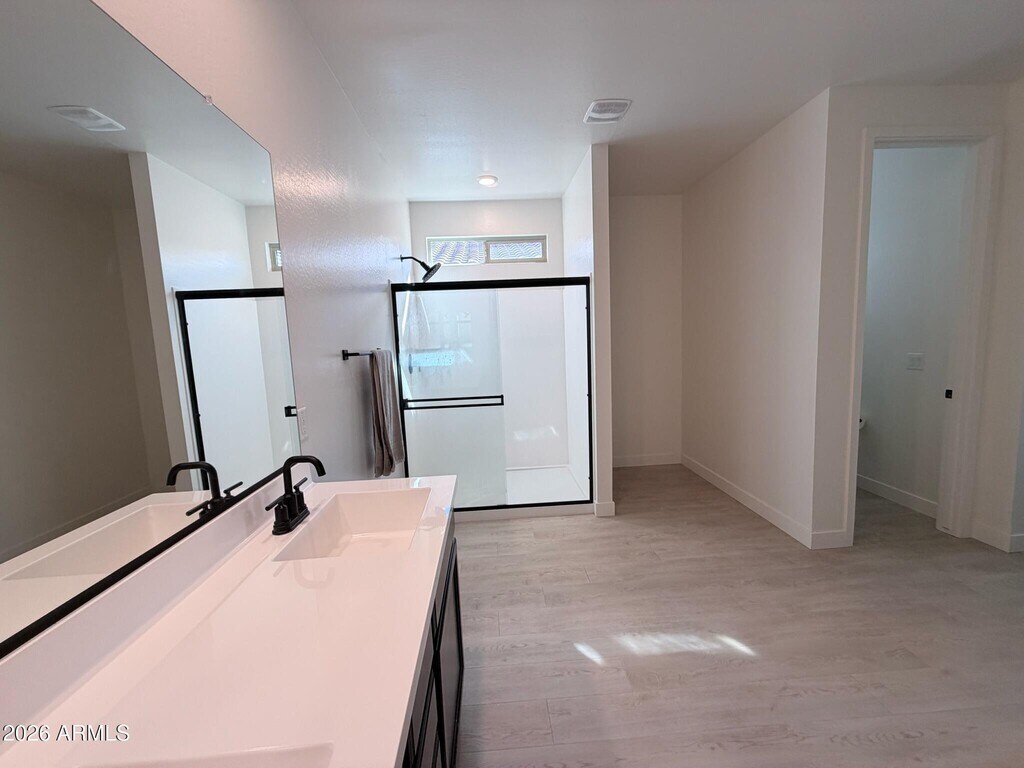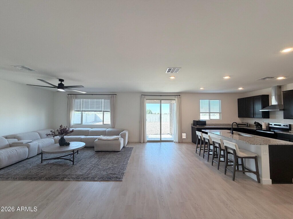 2024 new-build 3 bed,2 bath home offering 2,148 sq ft in a desirable gated South Mountain/Laveen community. Features split floor plan,9 ft ceilings,oak LVP flooring,and oversized primary suite with double vanity and large walk-in closet. Open kitchen with granite countertops,expansive cabinetry,and walk-in pantry. Home painted in 2026 in modern neutral tones prior to move-in. Fully fenced ~8,500 sq ft lot with 500 sq ft turf and extended patio. Washer,dryer & refrigerator included. Attached 2-car garage. Near Sky Harbor & 15-20 mins to Downtown. $2,650/mo. Small dogs considered; pet rent applies. You will not find a better rental in the area. This is true pride of ownership!