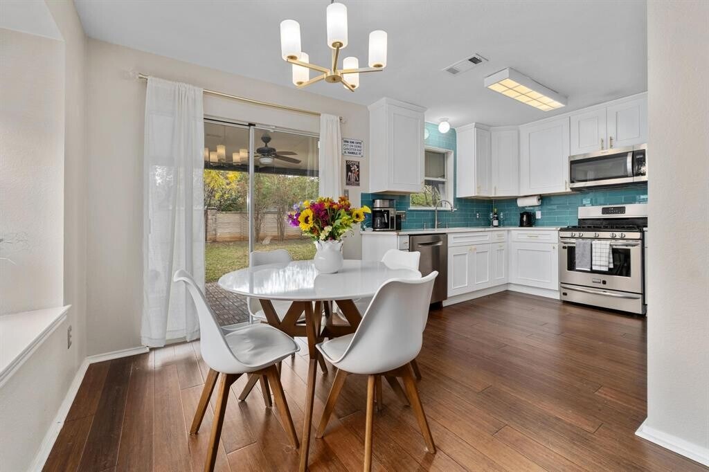 Welcome home! Lease must end May or June of 2026 or 2027. This stunning two-story home is nestled in an active and friendly South Austin community! A charming front porch invites you to the home, where you're welcomed into a gorgeous, bright and airy interior. Vaulted ceilings with two-story windows allow an abundance of natural light in, while the bright aesthetic is anchored by rich hardwood floors, installed just two years ago. The kitchen was beautifully updated in 2022, showcasing custom solid wood cabinetry and quartz countertops. The stylish backsplash extends to the ceiling and adds a pop of color, perfectly embracing the vibrant Austin style. The dining area is ideally tucked between the kitchen and living room, where sliding glass doors open onto a spacious covered patio and large backyard, creating a seamless indoor-outdoor living experience ready to take on this summer’s grilling and entertaining! A main-level powder room also makes hosting a breeze. The primary suite is located on the main level, complete with an ensuite bath and a walk-in closet, while the 2 secondary bedrooms are located upstairs for ideal privacy. To accompany the secondary bedrooms, a cozy loft is suitable for a quaint living space or home office. Recent updates are sure to instill confidence in your new investment, including a lifetime transferable foundation warranty! New water heater in 2025 as well has fresh exterior paint. The dishwasher and microwave were installed in 2024, and roof replacement and irrigation were installed in 2021. The neighborhood offers numerous parks, restaurants, nightlife, and shopping options nearby. Silk Oak Park is just around the corner, The Brodie complex is less than a mile away, and Manchaca is a quick five-minute drive. Additionally, the Westgate complex, featuring Central Market, is about four miles away. Zoned to sought-after Austin ISD schools, including Bowie High School.