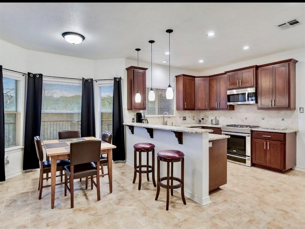Stunning lease opportunity in highly sought-after Great Hills with sweeping Hill Country and greenbelt views from nearly every room! This spacious 3-bedroom, 2.5-bath home offers over 2,600 sq ft of light-filled living space, thoughtfully designed to maximize comfort and showcase the scenery. Step inside to soaring ceilings, walls of windows, and multiple living and dining areas perfect for entertaining or quiet evenings at home. The family room features a cozy fireplace and French doors that open to expansive decks and balconies—ideal for relaxing while enjoying the incredible vistas. The kitchen offers generous counter space, plenty of cabinetry, and easy access to formal and casual dining areas. Retreat to the primary suite with a private balcony overlooking the trees and hilltops, a spa-like bath, and a spacious walk-in closet. Two secondary bedrooms provide flexibility for guests, office, or family needs. Outdoor living shines here with multiple decks, a stone patio, and fire pit—all oriented to take in the unobstructed views of the greenbelt and rolling hills. Mature trees add privacy while maintaining the open, airy feel. Conveniently located just minutes to Trader Joe’s, The Domain, Arboretum, Whole Foods, NW Austin’s tech corridor, and top-rated schools (Hill Elementary, Murchison Middle, Anderson High and close to charter schools such as Kealing and LASA). Quick access to major highways makes commuting a breeze, while nearby hike-and-bike trails invite you to enjoy nature right outside your door. This is truly a home that has it all!