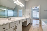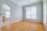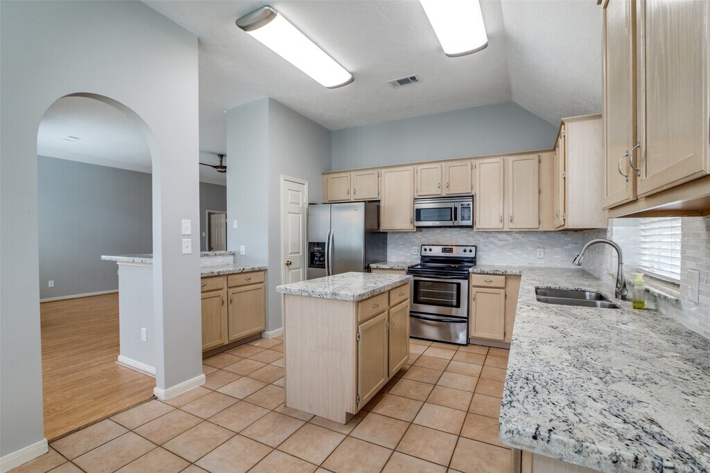 Charming and sunlit 3-bedroom,2-bathroom home boasting numerous modern upgrades. High-traffic areas showcase resilient wood-look laminate flooring. The kitchen is equipped with stainless steel appliances,stunning granite countertops,a generous island,breakfast bar,ample cabinetry,and expansive counter space—includes a side-by-side stainless refrigerator. The primary suite is filled with natural light and includes an en-suite bathroom with double vanities plus a separate tub and shower. Enjoy a roomy,secluded backyard ideal for gatherings,complete with an expansive patio. Conveniently located near restaurants,shops,and entertainment venues. Lawn care provided by the owner. MLS# 64354371