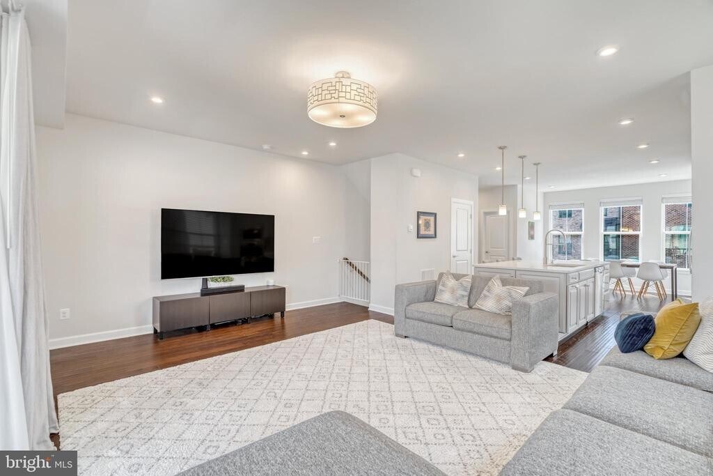 Lovely contemporary END UNIT townhome with 2,280 square feet of living space. This beautiful 4 bedroom, 3.5 bath residence features a 2 car garage and covered deck - a thoughtfully designed layout perfect for both everyday living and entertaining. The entry level welcomes you with hardwood flooring and includes a private bedroom and full bath with granite countertops, ideal for guests or a home office. The main level showcases engineered hardwood flooring throughout and an open-concept design centered around a modern kitchen with elegant quartz countertops, a large center island, classic white cabinetry, coordinating backsplash, cooktop, hood vent, and upgraded fixtures. The family room and dining area flank the kitchen, creating a warm and inviting space for gatherings. Step outside to the large covered balcony and enjoy cool evenings by the cozy gas fireplace. The upper level offers a spacious primary suite with a spa-like bath featuring dual vanities, quartz countertops, upgraded flooring, and refined finishes. Two additional bedrooms share a well-appointed hall bath with granite countertops. Beautiful window treatments, ceiling fans, and an in-unit washer and dryer complete this move-in-ready home! Ideally located just off Route 29 and only minutes to the Vienna Metro, Mosaic District, INOVA hospital, shopping, and Routes 66 and 50, this home offers exceptional convenience and commuter access. *Photos shown are prior to tenant occupancy.