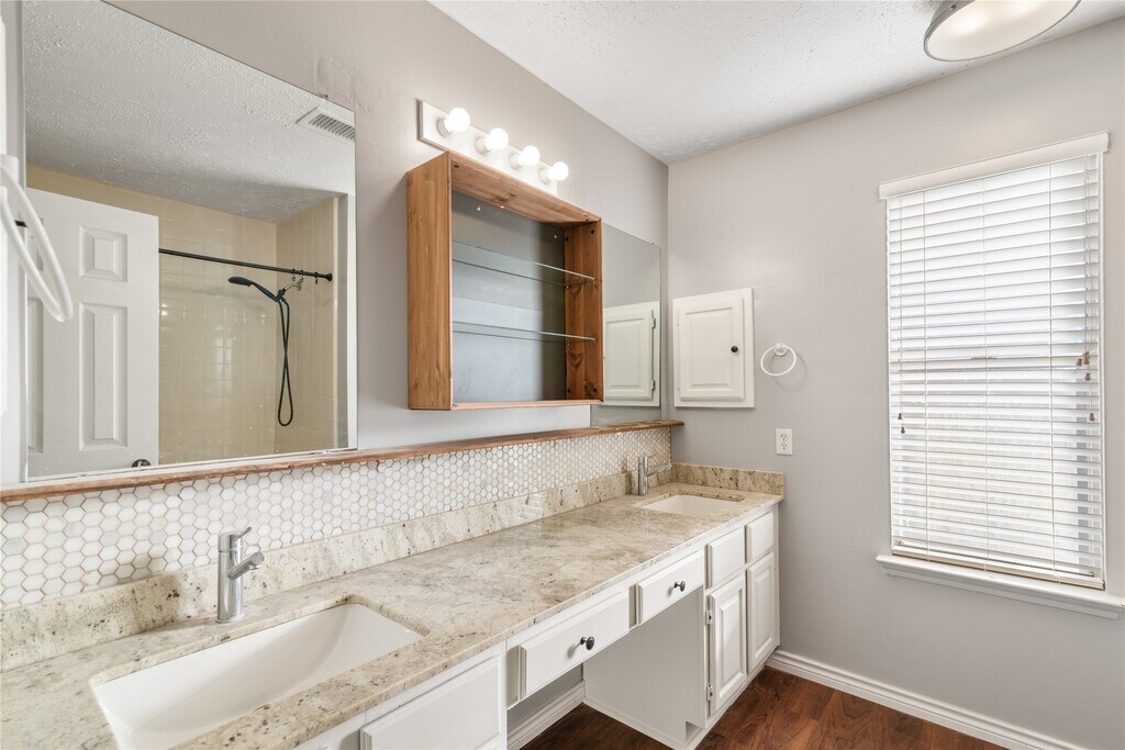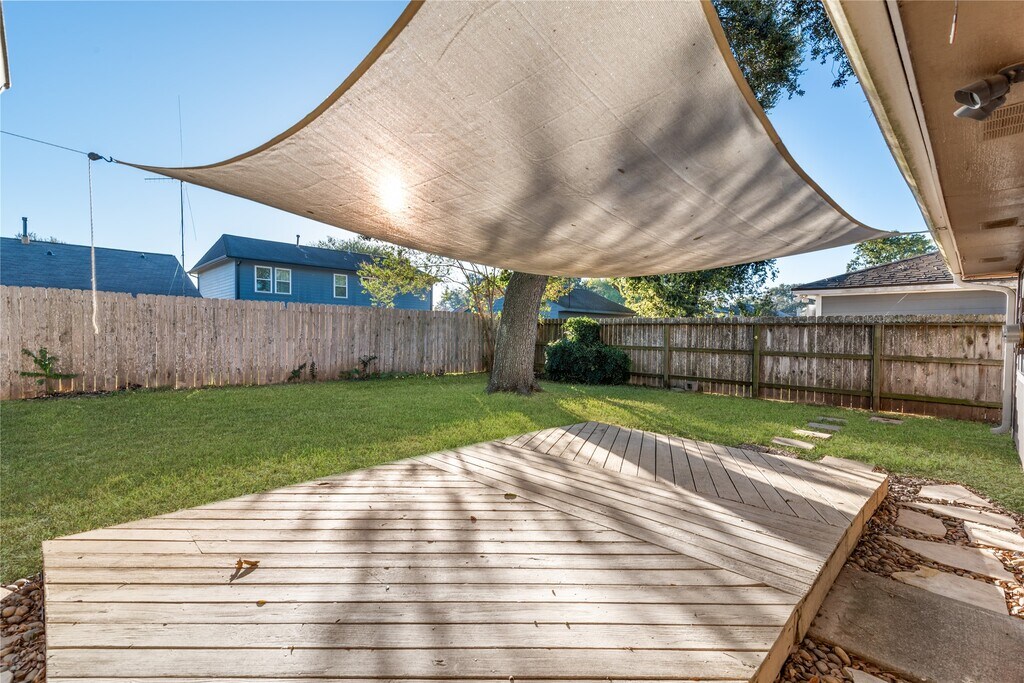 This beautifully updated home in Pecan Grove features granite countertops in This beautifully updated Pecan Grove home offers granite countertops in the kitchen and both bathrooms,complemented by elegant oil-rubbed bronze ceiling fans in every bedroom and in the living room. Matching bronze door knobs and sinks create a cohesive,stylish look throughout. The primary suite features a double-sink vanity,and the home provides abundant shelving for excellent storage. All three bedrooms include walk-in closets. Modern Nest A/C and doorbell systems add energy-efficient convenience. Outside,the property is shaded by mature trees and includes a charming patio area. MLS# 77718812