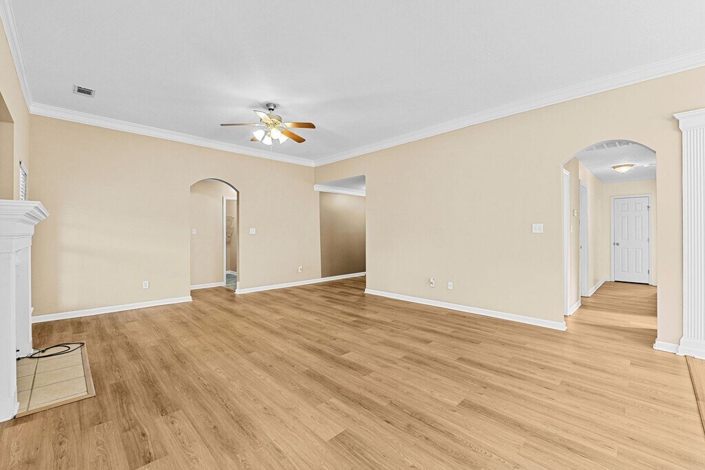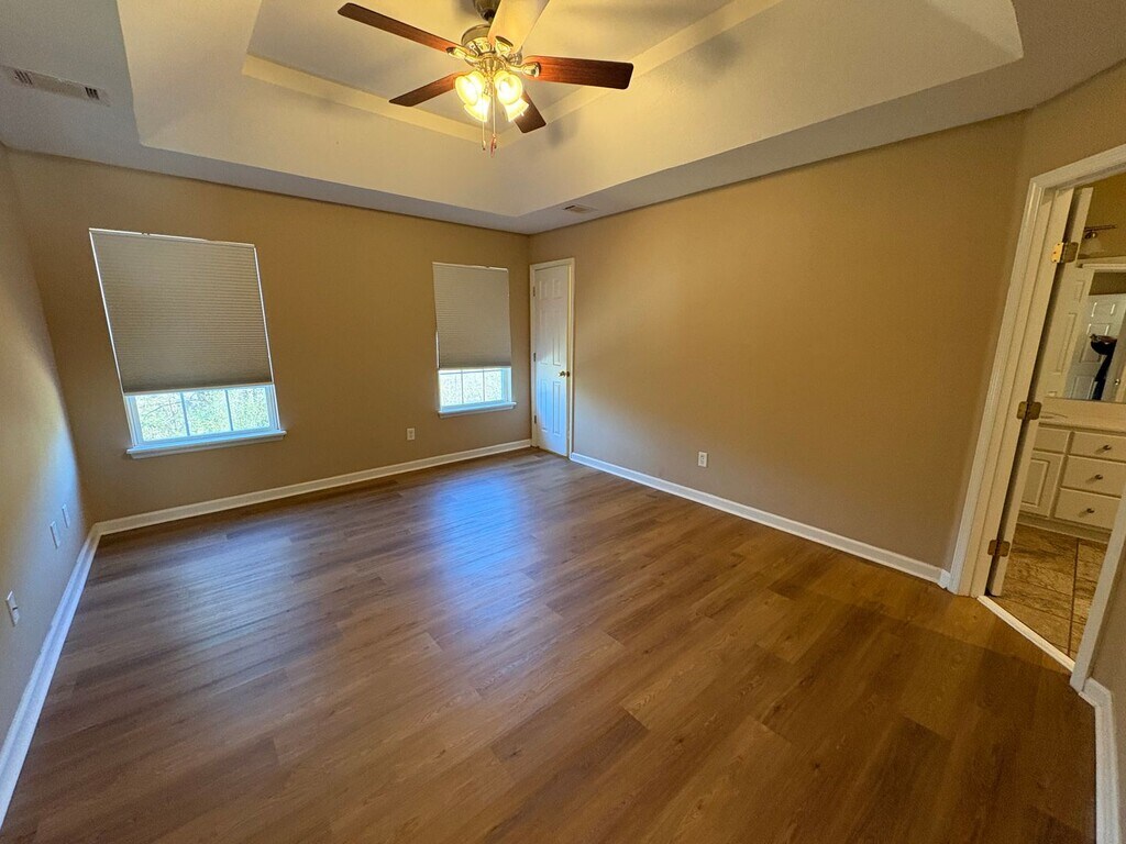Available Now! Spacious 5-Bedroom Home in Tudor Branch This beautiful 5-bedroom, 2-bath home is located in the desirable Tudor Branch community, offering access to a community clubhouse, swimming pool, and walking trails. The home features an open floor plan with 4 bedrooms on the main level and 1 bedroom upstairs, providing flexible living space. Enjoy hardwood floors throughout and a large deck overlooking a fenced backyard, perfect for outdoor relaxation or entertaining. The kitchen is equipped with stainless steel appliances, including a stove, dishwasher, and microwave. (Refrigerator not included—tenant to furnish.) Additional features include: Laundry room with washer/dryer hookups Storage area with separate exterior entrance 2-car garage Spacious fenced backyard This home is truly a must-see to appreciate. Pet Policy No pets allowed Resident Benefit Package An additional monthly fee applies Please contact our office for full details Important Notes School zones must be verified by the applicant, as they are subject to change Photos are for layout reference only; applicants are encouraged to visit the property in person to confirm current colors, finishes, and condition
