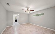 Excellent opportunity to rent a like-new 1,833 sq. ft. home in Palm Bay,FL,just 8 minutes from I-95,close to shopping centers,and only 30 minutes from Melbourne Beach. This beautiful home features an open-concept kitchen and living area,4 spacious bedrooms,2 full bathrooms,and a covered patio overlooking a generous lot — perfect for enjoying the outdoors. Highlights: solar panels powering the entire property ($200/month in addition to rent),easy online application and move-in ready with a minimum of first month’s rent and one month’s security deposit required.