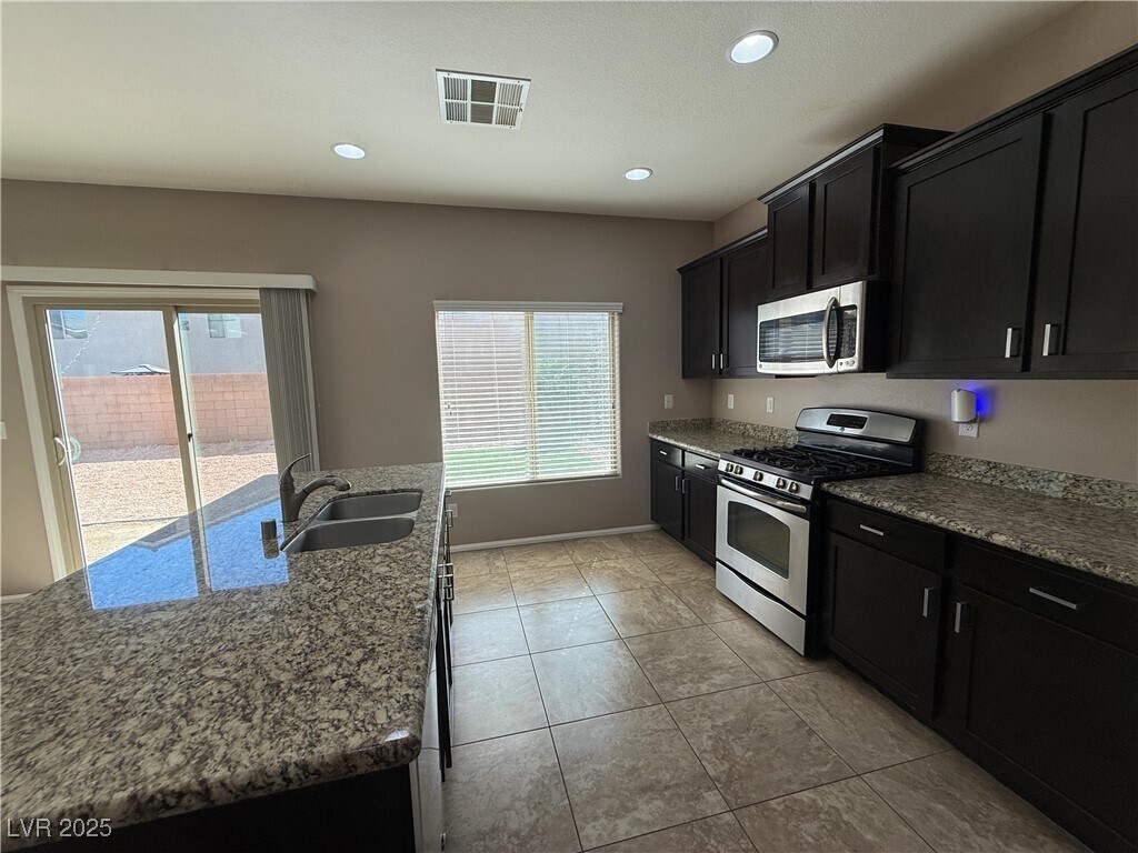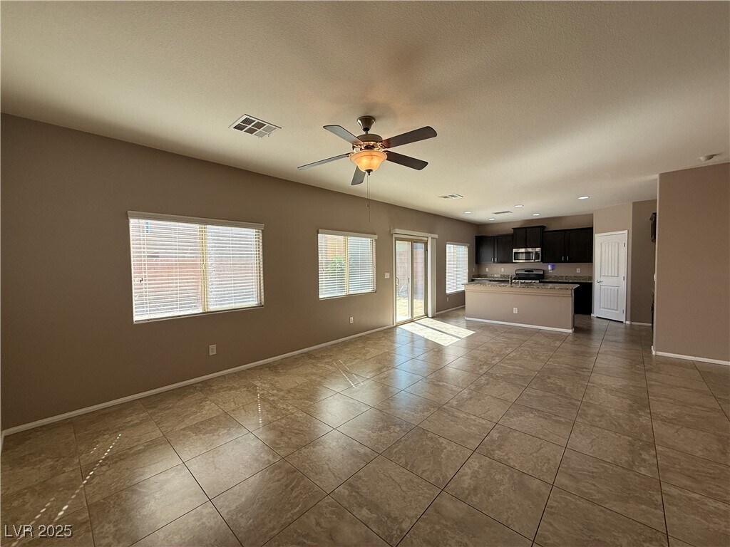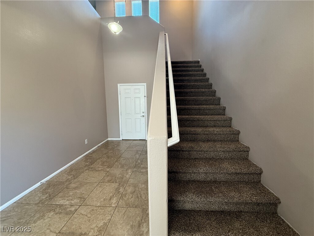 Located in the Heart of Centennial Hills! This spacious home offers nearly 3,000 sq ft of well-designed living space, perfect for comfort and functionality. Soaring high ceilings create an open, airy feel the moment you step inside. The home features generously sized bedrooms, including one conveniently located on the main floor. Durable tile flooring runs throughout the downstairs living areas (excluding the bedroom). Upstairs, you'll find an expansive primary suite complete with a large sitting area and two walk-in closets—ideal for added luxury and storage. The backyard is low-maintenance, perfect for relaxing or entertaining with ease. Don't miss the opportunity to make this beautiful home yours, apply online today!