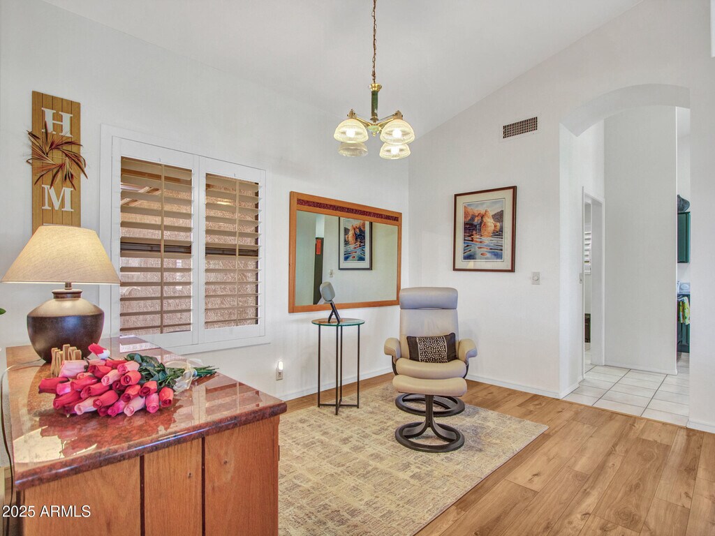 Elegant Golf Course Retreat in Westbrook Village! Discover refined desert living in this beautifully furnished,detached 2-bedroom,2-bath home located on a championship golf course in Peoria's premier 55+ community. This single-level residence boasts stylish interiors and it is fully equipped; just bring your suitcase! Enjoy sweeping fairway views from the covered patio. Resort amenities including two golf courses,pools,fitness centers,and social clubs for a minimum fee. Minutes from upscale dining,shopping,and freeway access This property offers an unparalleled seasonal retreat.