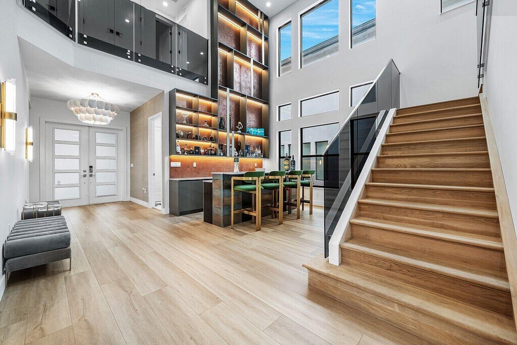 Welcome to an exceptional 5-bedroom,6.5-bath waterfront Corsica model in prestigious Lotus Edge. Designed by Clive Daniel,this residence offers refined interiors,a light-filled open layout,and a sleek modern kitchen. Entertain effortlessly with a state-of-the-art custom bar with ice maker,a custom theatre room,and a spacious loft. The primary suite offers a private retreat with a beautifully appointed bath and serene water views. Step outside to a spa-inspired backyard featuring a summer kitchen,perfect for elevated indoor-outdoor living. Residents enjoy world-class,resort-style amenities. A rare,luxury rental opportunity. Property can be rented for $20,000 a month fully furnished. MLS ID B26006121