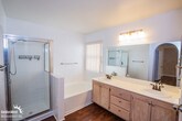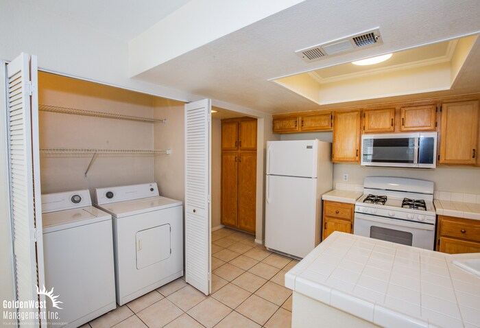 Spacious 3Bdm 2.5Ba Two-Story Home next to Queensridge! Welcome this home offering a comfortable layout, generous living spaces, and a private backyard. The main living area features tile flooring, large windows that bring in natural light, and a cozy fireplace that anchors the space. The open layout flows seamlessly into the dining area and kitchen, making the home functional for both everyday living and entertaining. The kitchen offers ample cabinetry, tile countertops, and a full appliance package including refrigerator, stove/oven range, dishwasher, and microwave. An in-unit washer and dryer are conveniently located just off the kitchen in a dedicated laundry area with additional storage. Upstairs, bedrooms are well-proportioned and finished with wood-style flooring, neutral paint tones, and ample closet space. The primary suite includes an en-suite bathroom with a dual-sink vanity, soaking tub, and separate glass-enclosed shower. Step outside to a private backyard, perfect for outdoor dining or relaxing!. This home offers convenient access to Downtown Summerlin, Las Vegas Ballpark, shopping, and access to 215, making commuting and daily errands easy. Tenant pays all utilities. Pets with approval via process. This property allows self guided viewing without an appointment. Contact for details.
