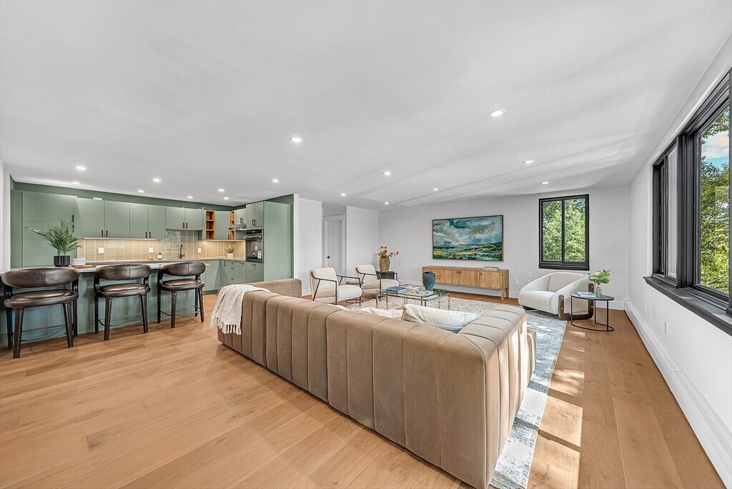 Luxury Townhome Alternative in Newton North District: Welcome to a rare and elegant 3-bedroom,2.5-bath luxury duplex that offers the space and layout of a single-family home with the ease of maintenance-free condo living. Located in the heart of Newtonville Village,this move-in ready residence combines modern renovation with a highly functional layout perfect for both living and entertaining. Step inside to a bright,open-concept main level featuring refined finishes,new hardwood flooring,recessed lighting,and a designer kitchen with quartz counters,full-height cabinetry,and premium stainless appliances. The dining area flows seamlessly into an oversized living room,creating a flexible space ideal for gatherings or quiet evenings at home. A rare highlight of this home is the two heated underground garage parking spaces,providing true New England convenience. Additional features include central air,in-unit laundry,new windows,and significant system upgrades. MLS# 73454389