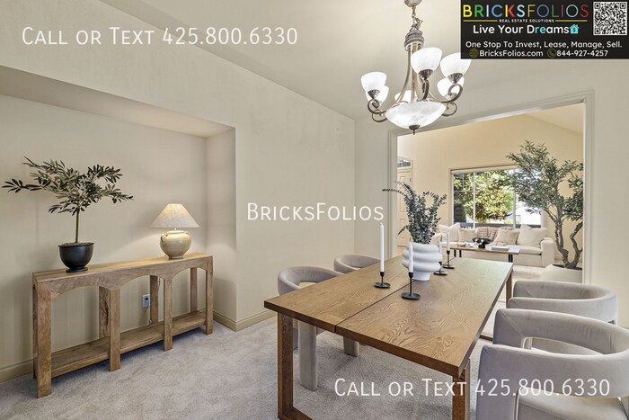 Signing lease before April 15th for $4600 before rent adjusts to market rent of $4850. Executive Living in Redmond – A Murray Franklyn Masterpiece Step into sophistication with this fully updated 4-bedroom, 2.5-bath executive home by Murray Franklyn, freshly painted inside and out to impress even the most discerning resident. From refined finishes to thoughtful upgrades, every detail speaks to comfort, quality, and timeless design. Elegant & Functional Living Spaces: An open-concept living room with a cozy fireplace flows effortlessly into a formal dining area—perfect for both upscale entertaining and relaxed family dinners. Sliding doors open to a professionally landscaped, fully fenced backyard, ideal for quiet mornings or lively gatherings. Chef’s Kitchen That Shines: At the heart of the home is a stunning kitchen featuring granite countertops, stainless steel appliances, and a spacious pantry—crafted for culinary creativity and easy entertaining. Primary Suite Sanctuary: Upstairs, escape to your private retreat in the luxurious primary suite, complete with a spa-inspired 5-piece bath and a large walk-in closet. A bonus room offers flexible space—home office, gym, theater, or playroom—tailored to your lifestyle. Executive-Level Upgrades: From brand-new epoxy flooring in the 3-car garage to modern touches throughout, this home blends elegance with function. Whether working from home or entertaining guests, you’ll love the upgraded touches throughout. Premier Location Located in the heart of Redmond Ridge, enjoy walkable access to Rosa Parks Elementary, Timberline Middle School, community parks, and trails. Commuting is a breeze with nearby Microsoft & SpaceX shuttle stops, and quick access to dining, shopping, and Redmond tech campuses. Rental Terms: - Pets allowed on a case-by-case basis ($50/pet/month). - HOA paid by owner - Tenants responsible for all utilities - No smoking This move-in-ready home is not just a place to live; it's a lifestyle waiting to be embraced. Schedule your tour today and make this dream home yours! _____________________ BricksFolios Property Management is an equal housing lessor under the FHA. Applicable local, state, and federal laws may apply. Additional terms and conditions apply. This listing is not an offer to rent. You must submit additional information, including an application to rent and an application fee. All leasing information is believed to be accurate, but changes may have occurred since photographs were taken and square footage is estimated. Renter to verify all information. Furthermore, prices and dates may change without notice. Please note this home is governed by a HOA. An account set-up fee will be charged on all new leases. All adult occupants need to apply. Application fee is $40 per adult. __________________ Beware of scams: We will never ask you for your username and password. We do not advertise on Craigslist, Facebook Marketplace, etc. We will never request funds through a payment app like CashApp, Venmo, Zelle or Western Union. For more info, please submit an inquiry for this home. Applications are subject to our qualification requirements. Additional terms and conditions apply. CONSENT TO TEXT MESSAGING: By entering your mobile phone number, you expressly consent to receive text messages from BricksFolios. Message and Data rates may apply. * Please refer to our Tenant Selection Guidelines. Please ask at the showing. Contact us to schedule a showing.